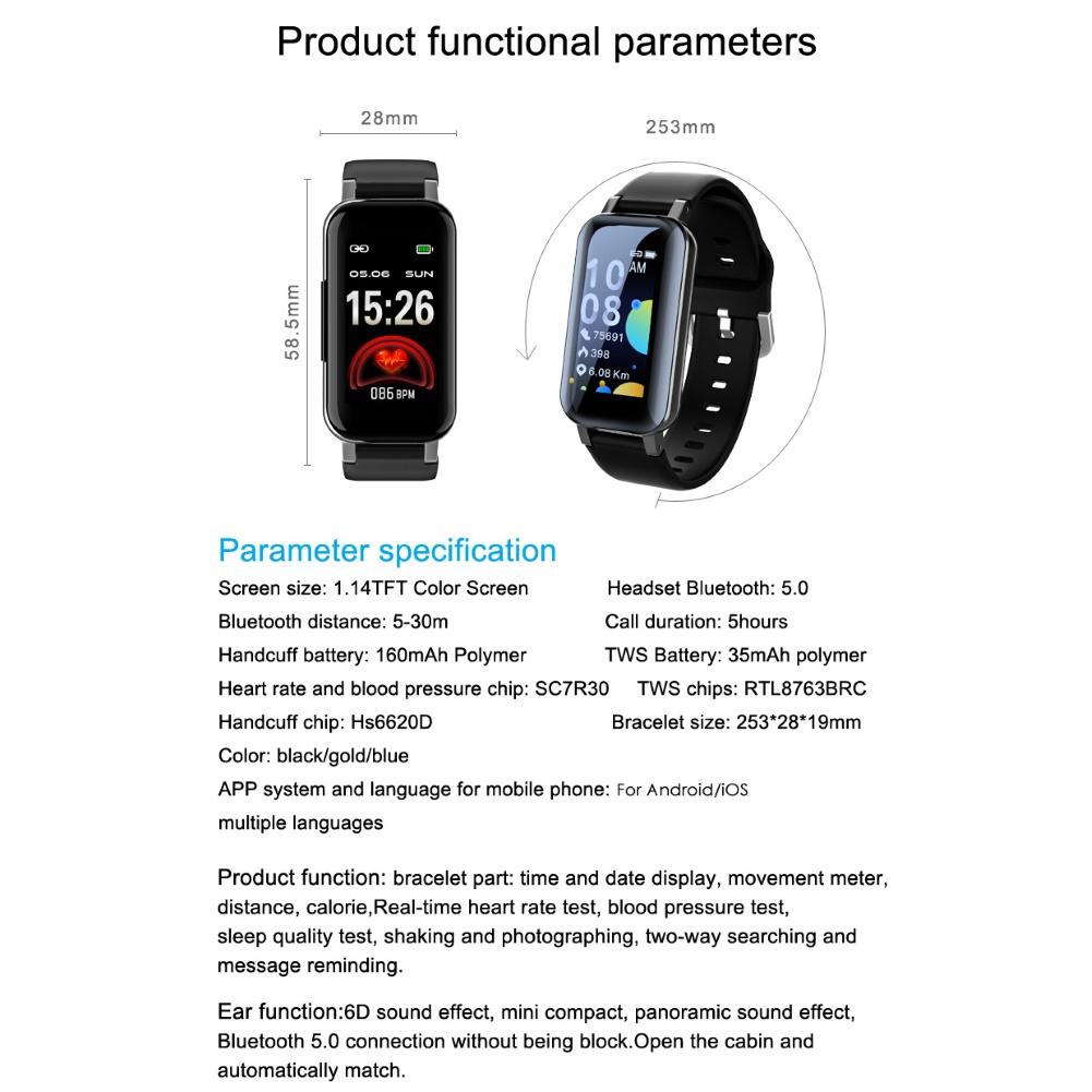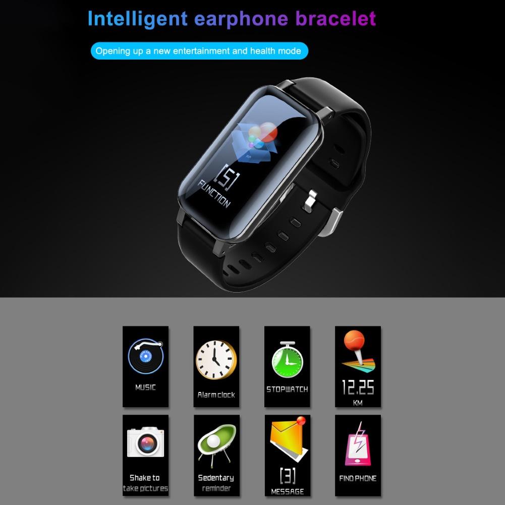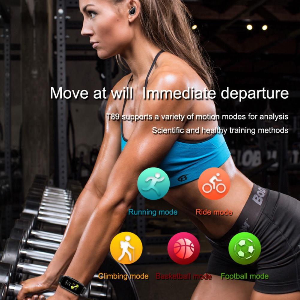T89PRO 1,14 дюймовый Bluetooth монитор сердечного ритма спортивный умный Браслет Шагомер с Bluetooth наушники водонепроницаемые