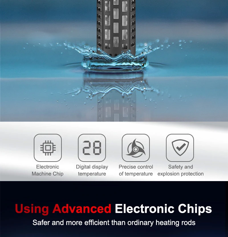 4. С дисплеем температуры, с температурным зондом в нижней части нагревательного стержня, точный контроль температуры.