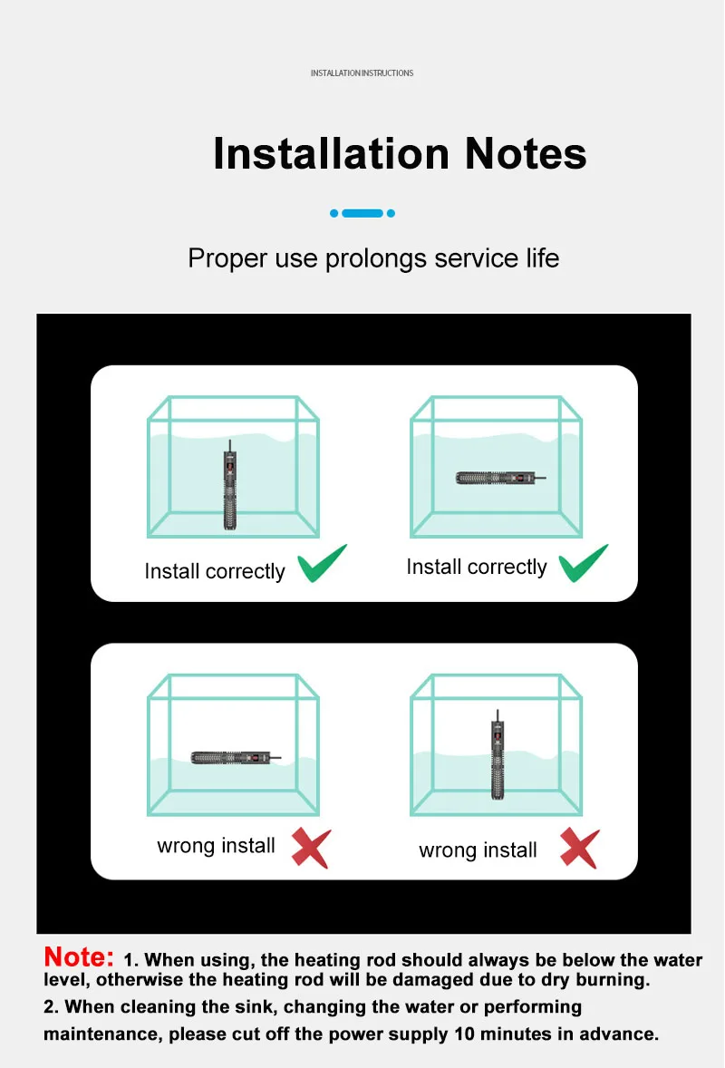 6. Мощность нагревательного стержня лучше для соответствующего аквариума