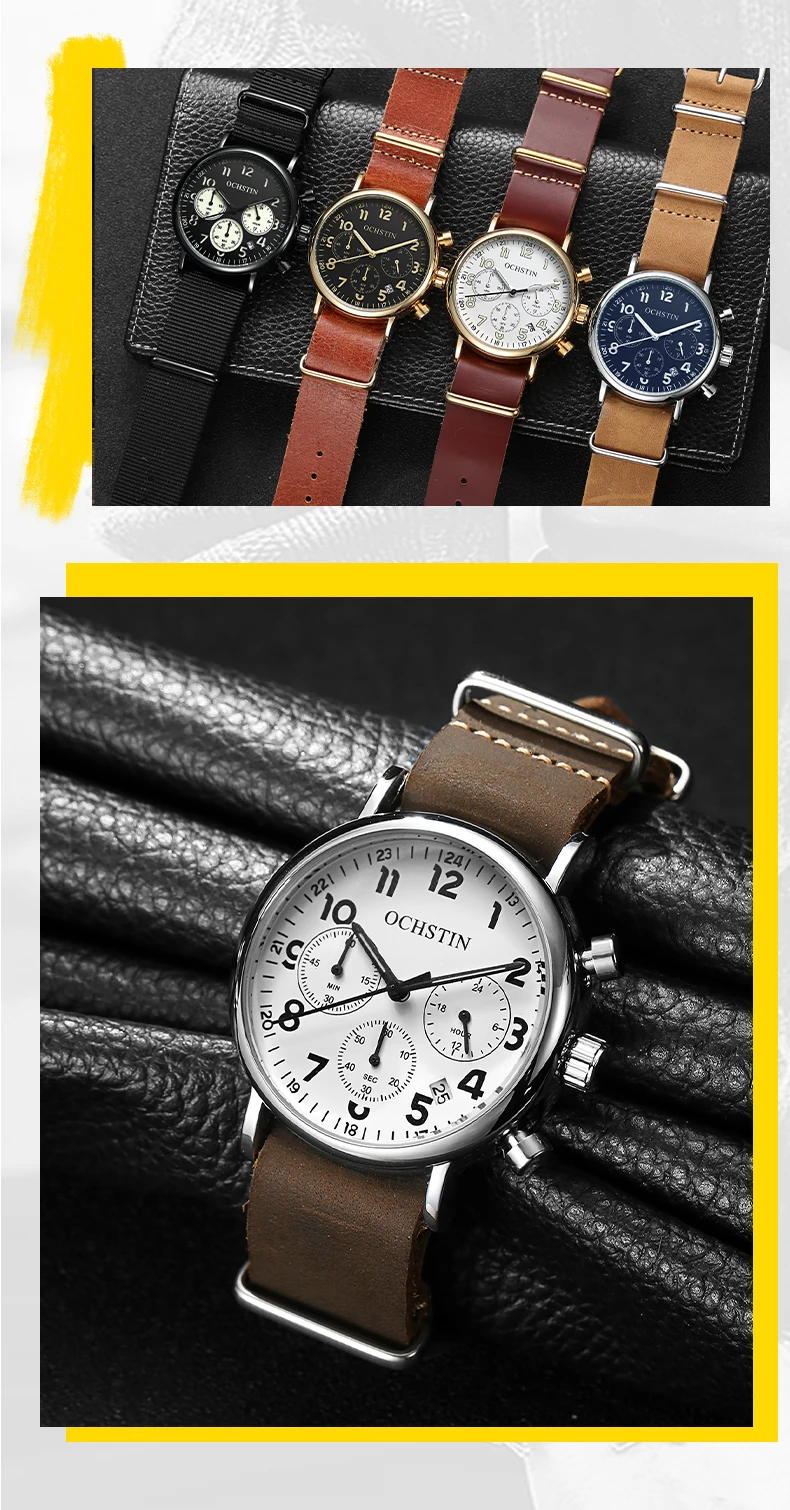 -100% Натуральная воловья кожа/нейлоновый ремешок для часов