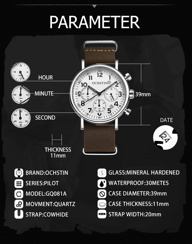 -Высококачественный аналоговый кварцевый механизм с точным временем в пути и сроком службы 2 года