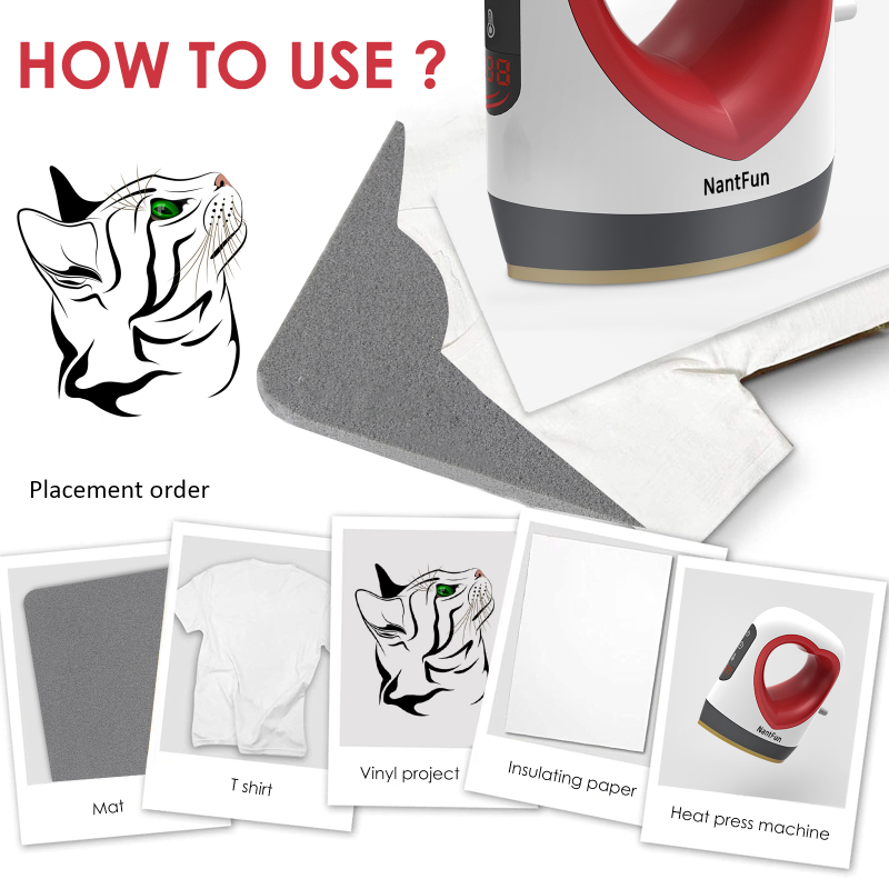 [Простое управление и мобильное горячее тиснение]: очень подходит для HTV передачи винила, вспышки, копировальной бумаги и т. д. просто откройте его, чтобы сделать виниловую наклейку на футболку или другие предметы. Для большой области горячего тиснения, нужно только медленно перемещать машину, чтобы равномерно нагревать ее, чтобы завершить большой дизайн.