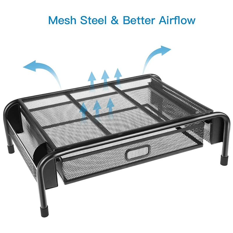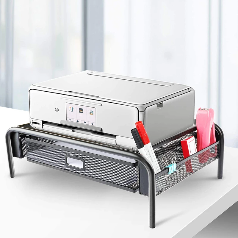 Подставка для монитора, сетчатая металлическая стойка для принтера, с выдвижными ящиками и боковыми карманами, может держать компьютеры, ноутбуки, ручки