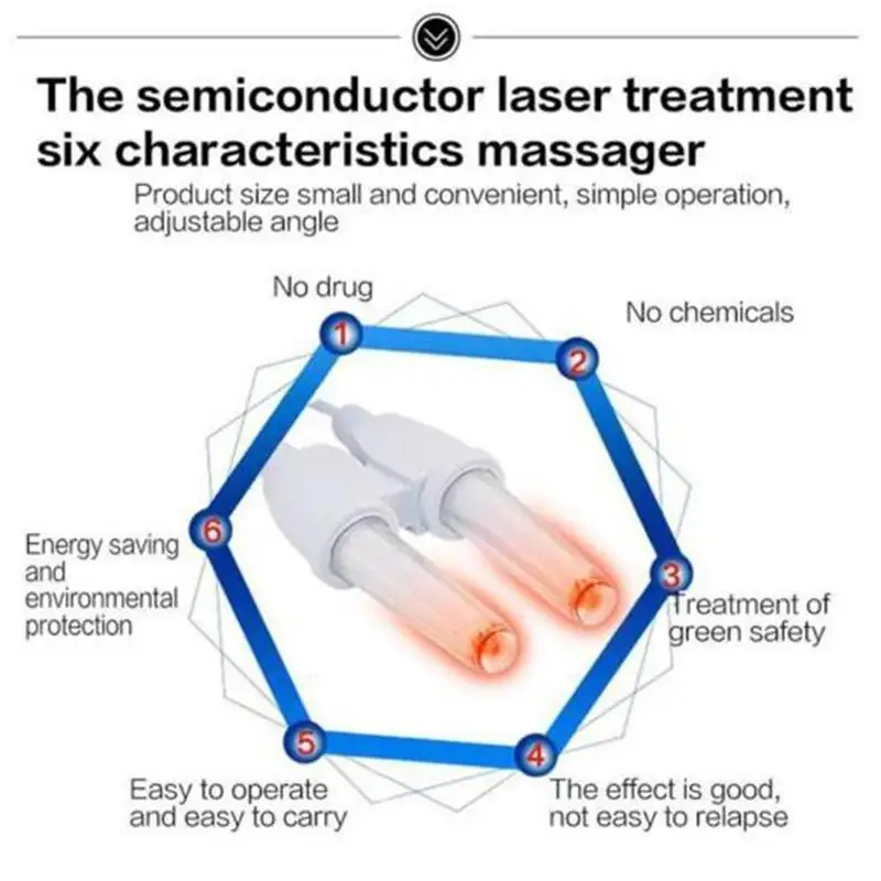 Этот вид продукта-портативный массажер для дома. Принимает низкоуровневое лазерное облучение, которое безболезненно, неинвазивно, без побочных эффектов и имеет хорошие, репидные эффекты. Прибор не содержит фармацевтических и химических компонентов. Лазерное лечение в корне повышает детоксикационную способность и иммунокомпетентность.