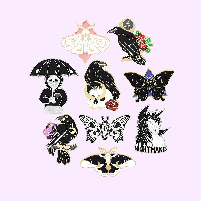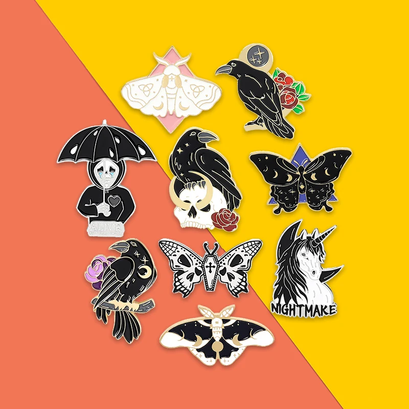Товар: Мистический скелет, Бабочка, эмаль, булавка на заказ, Панк серия, звезда, луна, Готическая брошь, отворот, булавки, украшения для футболки, подарок для друзей