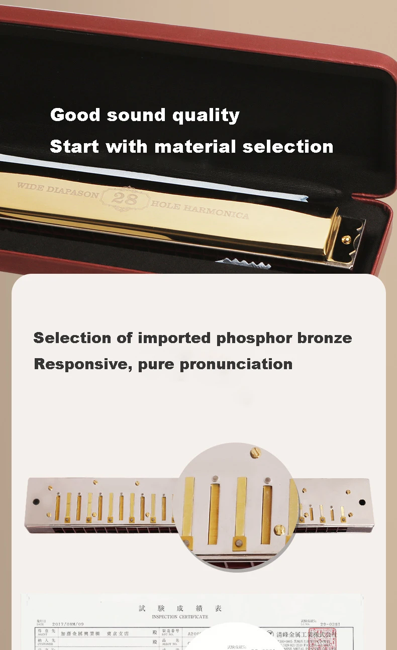 Purchase notice: Each harmonica is made and tuned through multiple manual processes, and there may be slight scratches on the head and bottom.