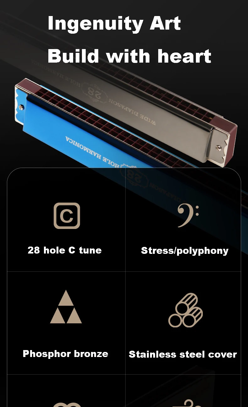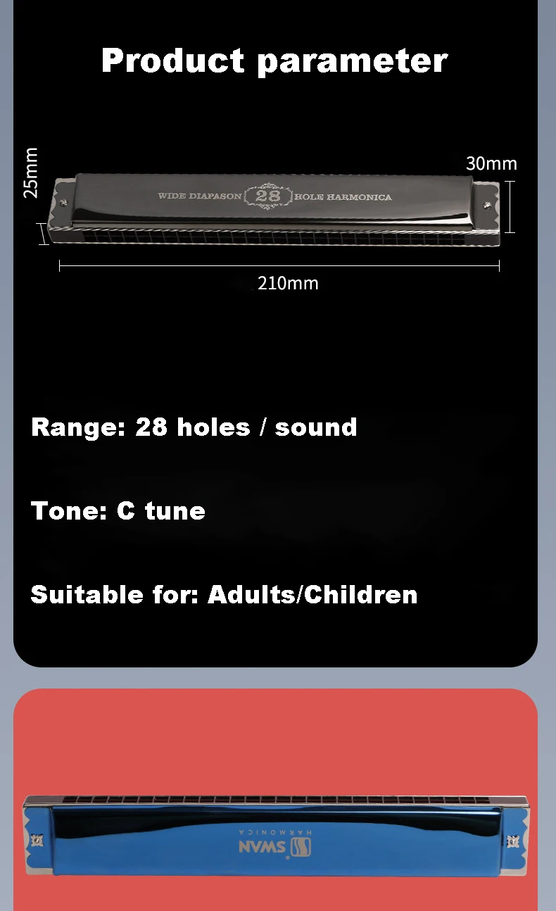 Harmonica Music Instrument 28 Hole C Tune Stress Polyphony Harmonica Beginner Adult Professional Playing Instrument