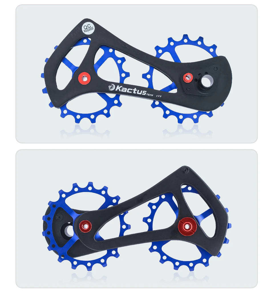 3-е преимущество:Этот 17TR двухколесный задний переключатель совместим с 11-28T, 11-30T или даже 11-34T кассетами. Нужно только добавить хвостовый крючок (вешалка). Таким образом, их можно назвать самым быстрым шкивом RD в мире.