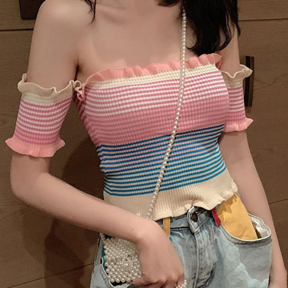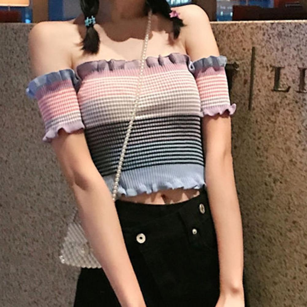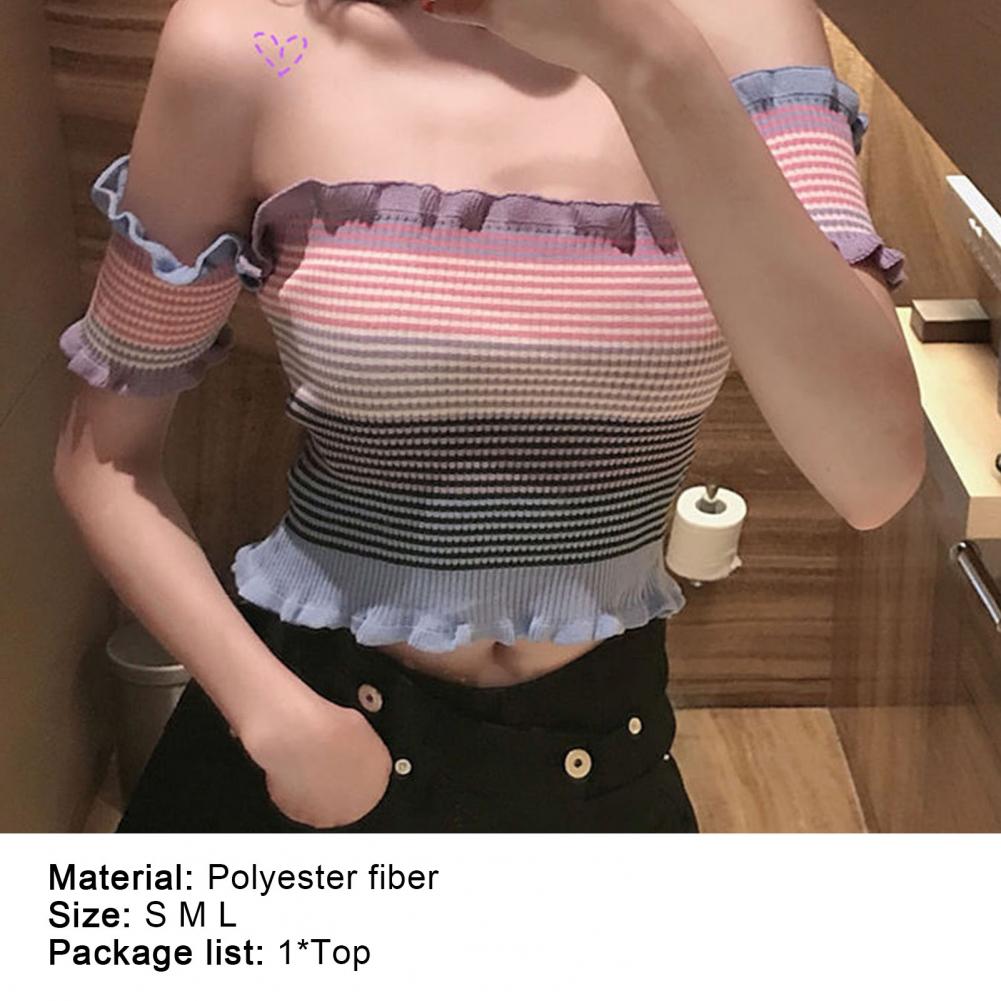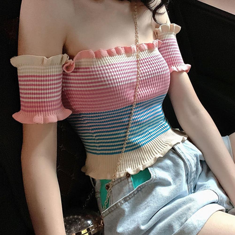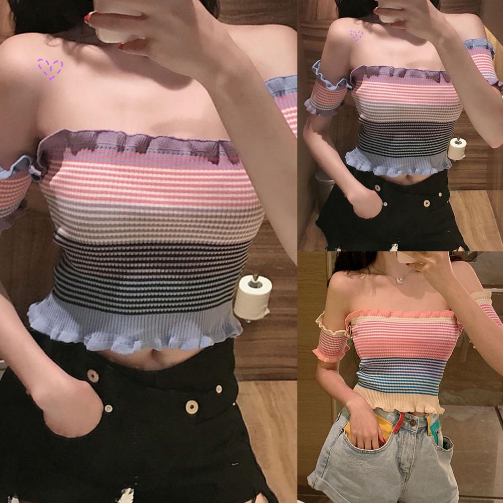 Женский сексуальный укороченный топ с открытыми плечами и коротким рукавом в радужную полоску, уличная одежда