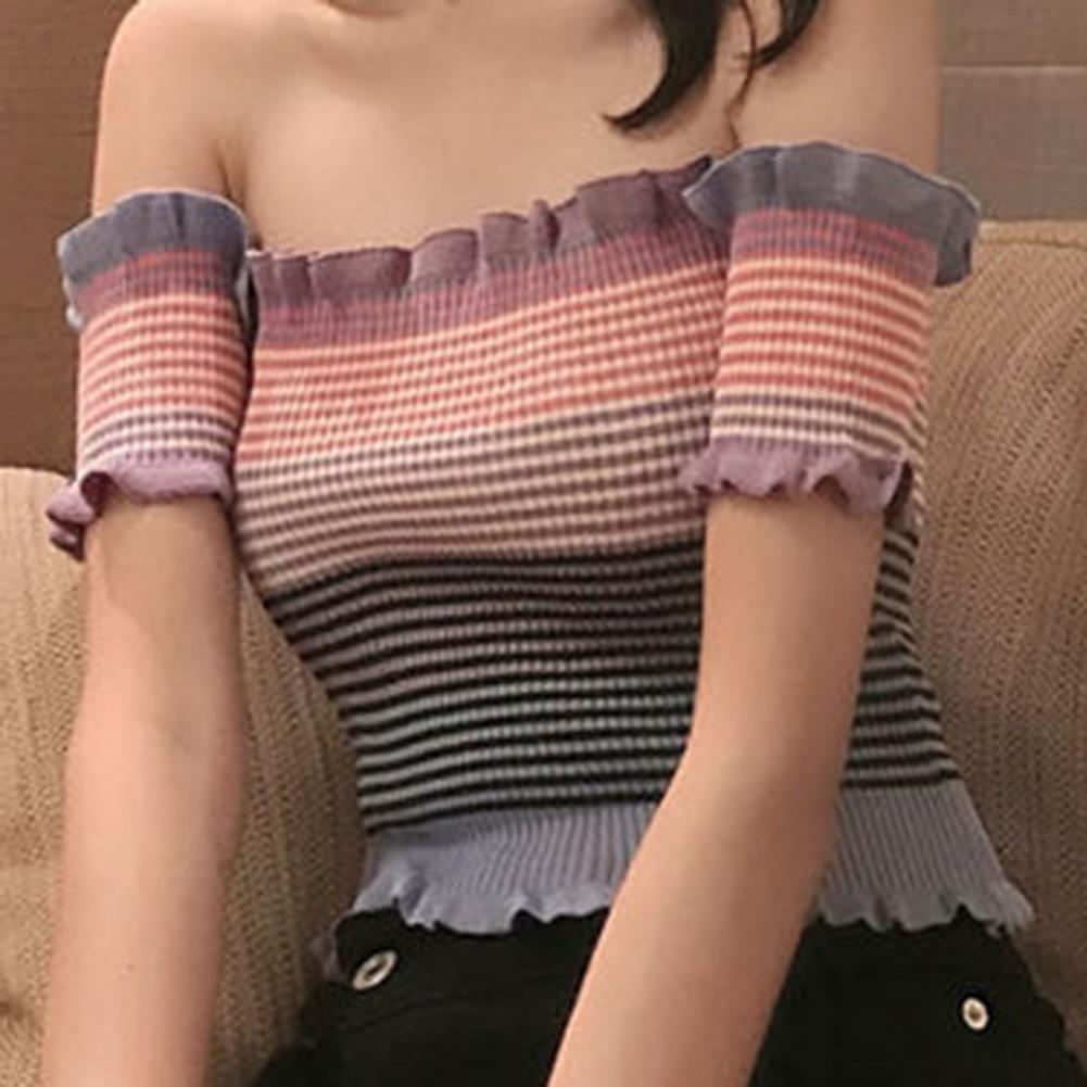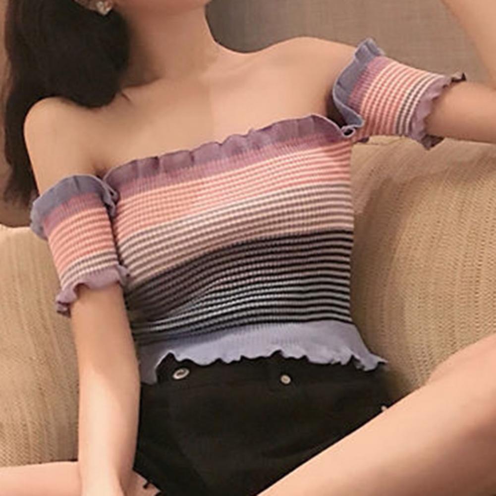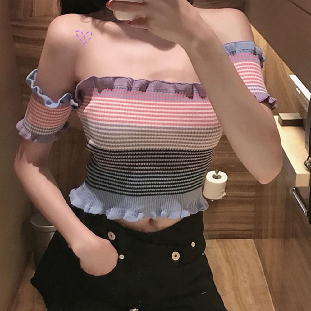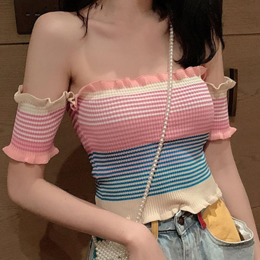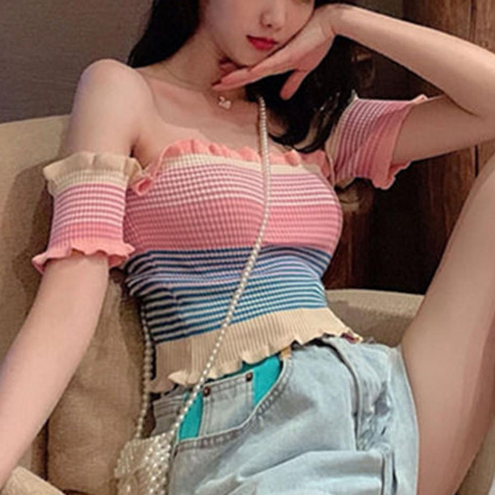 Женский сексуальный укороченный топ с открытыми плечами и коротким рукавом в радужную полоску, уличная одежда