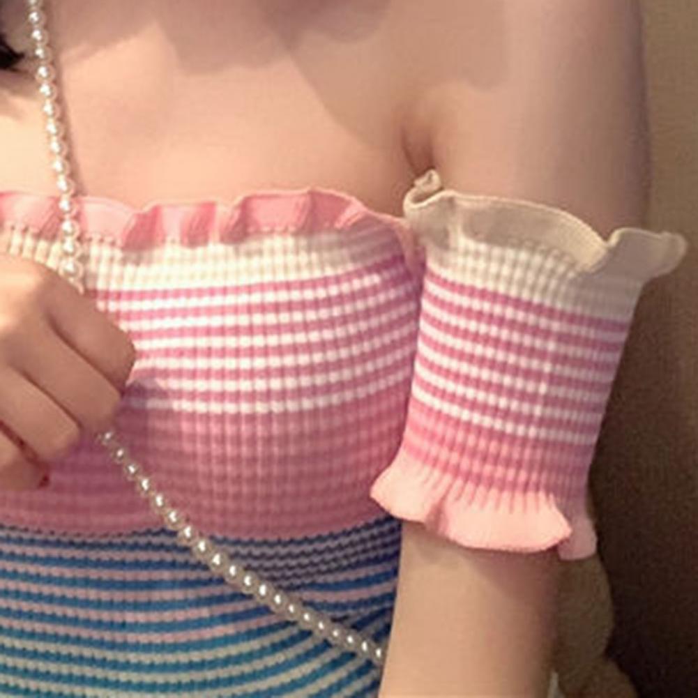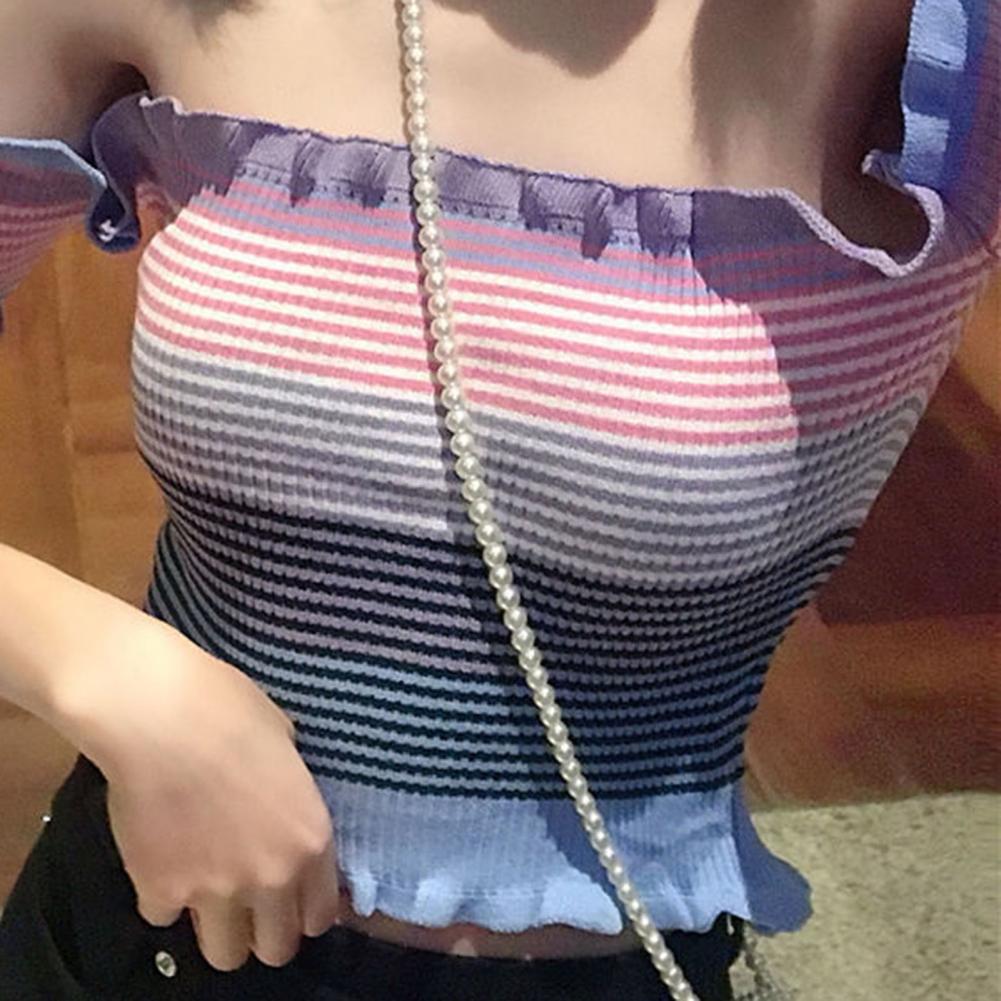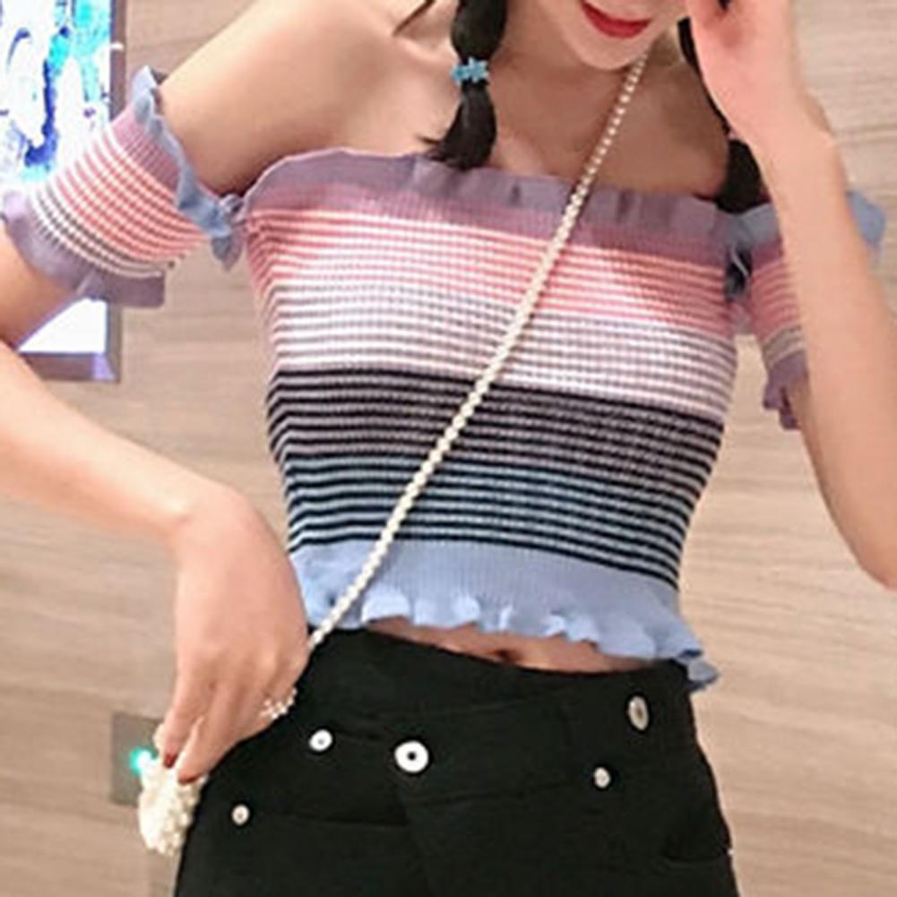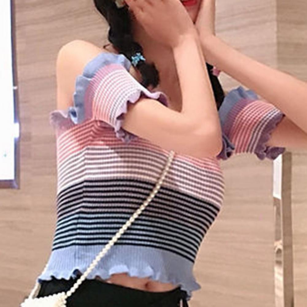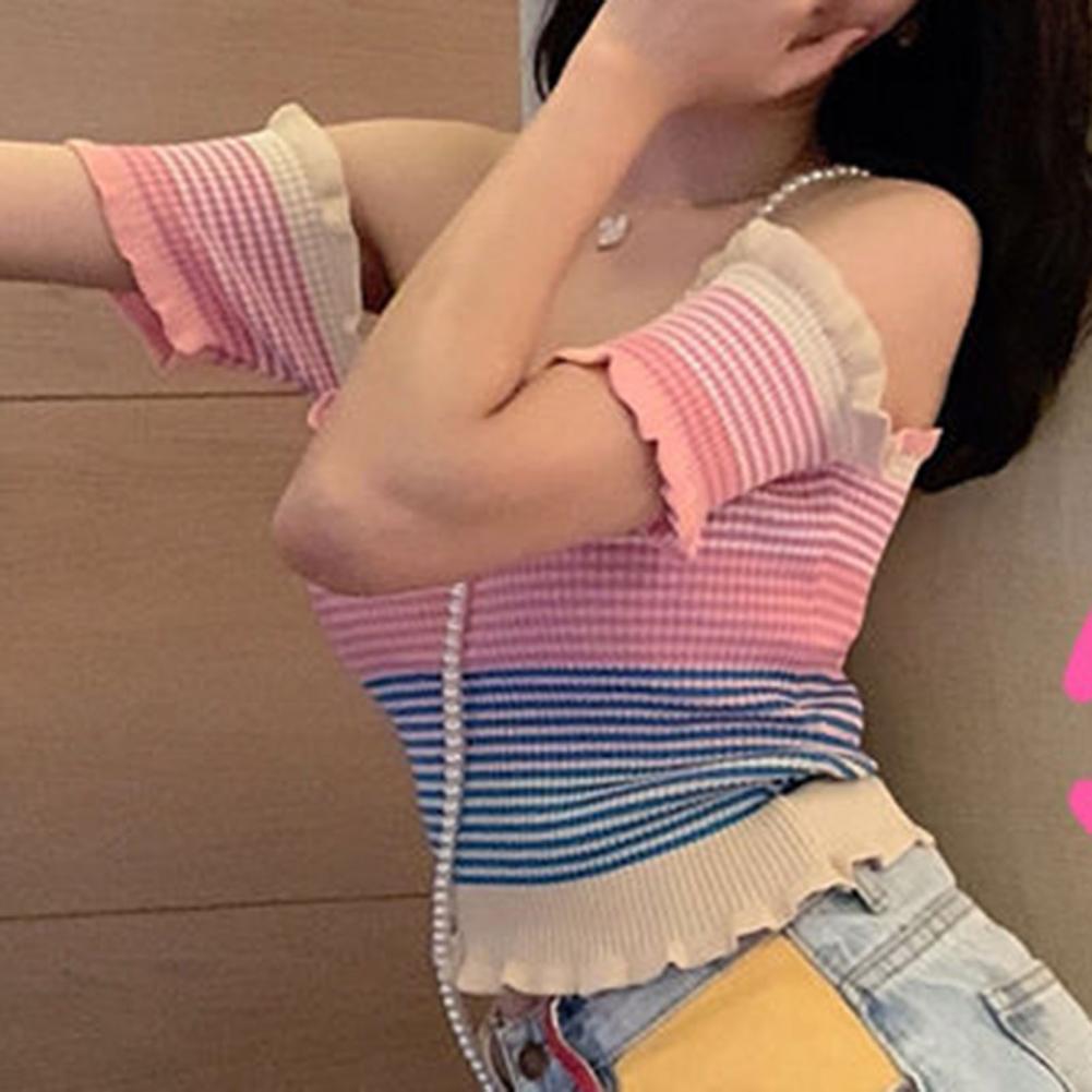 Женский сексуальный укороченный топ с открытыми плечами и коротким рукавом в радужную полоску, уличная одежда