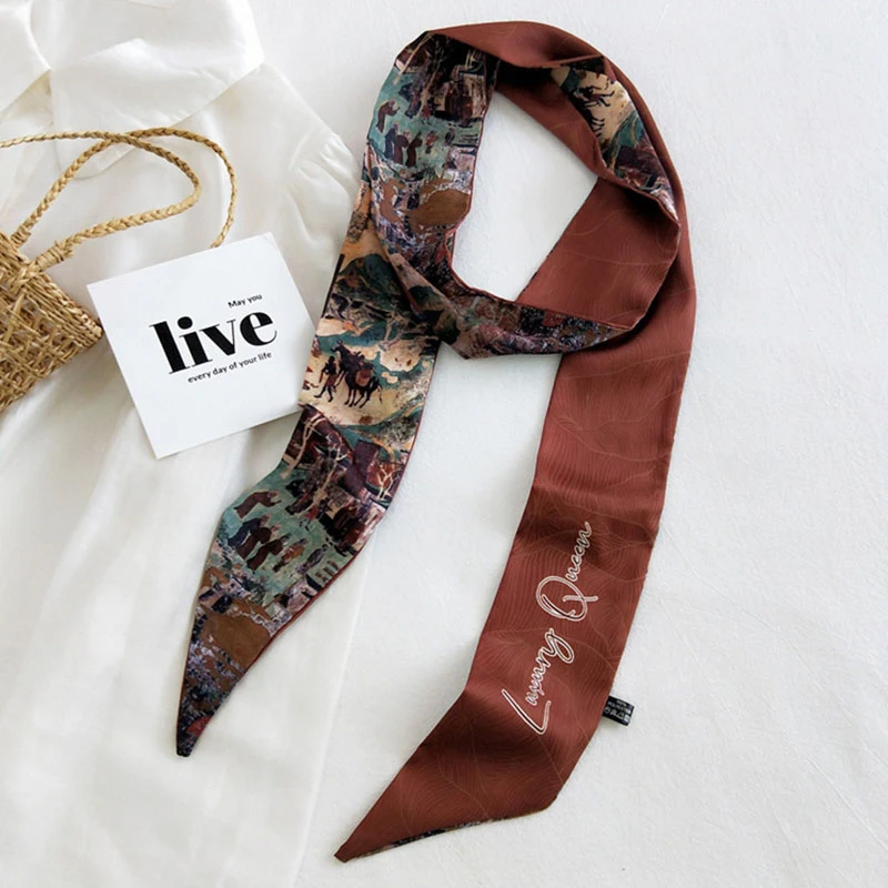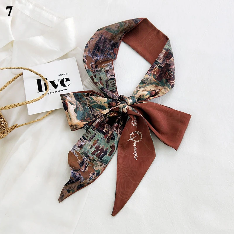 Модный принт, повязка для волос, женский шелковый длинный обтягивающий шарф для шеи, шарф для волос, повязка на голову, многофункциональные маленькие шарфы