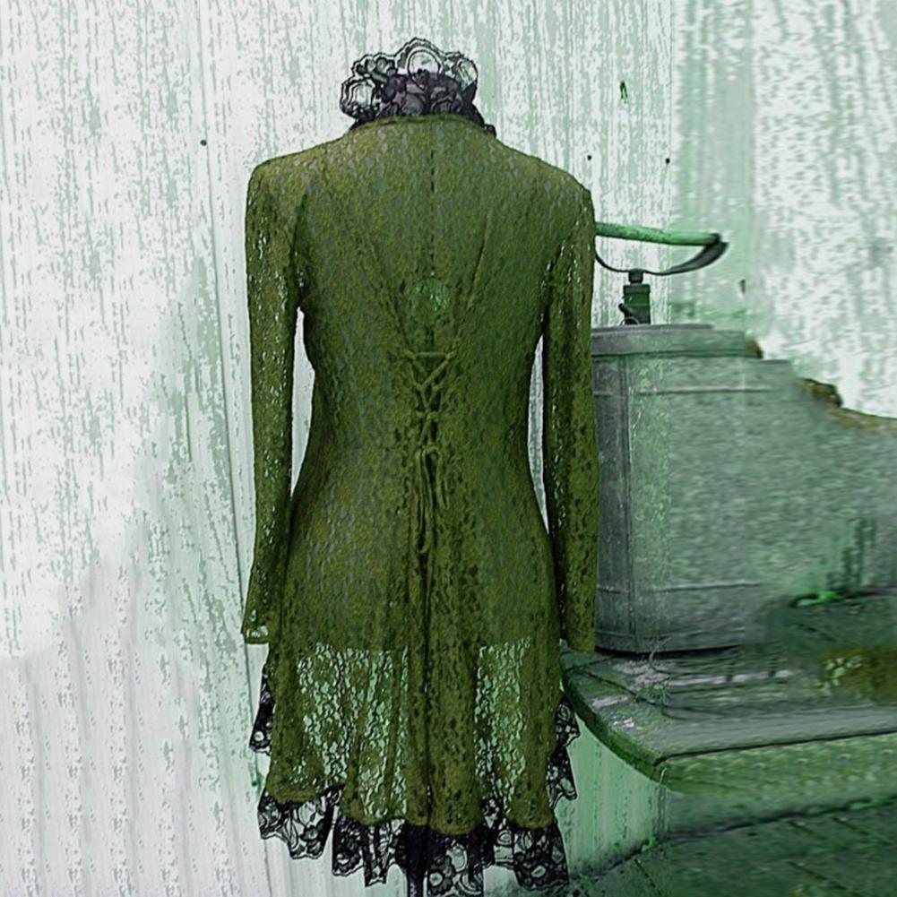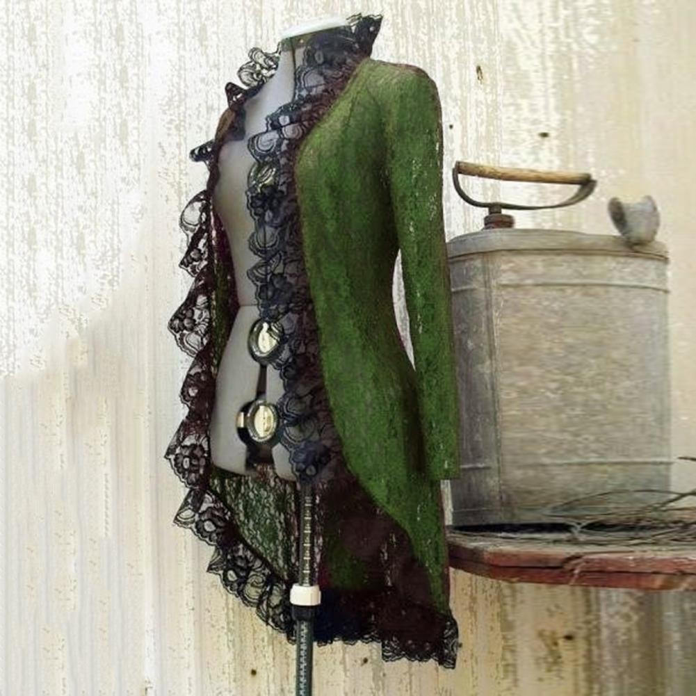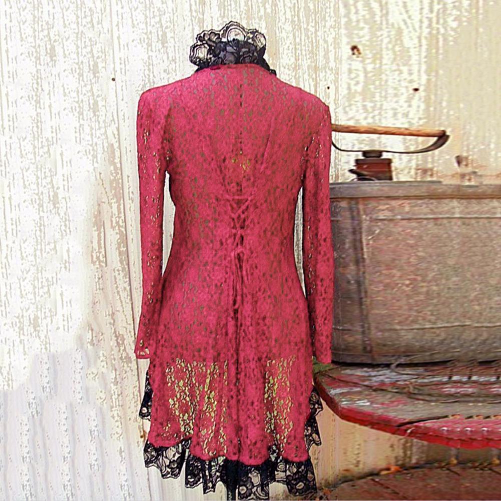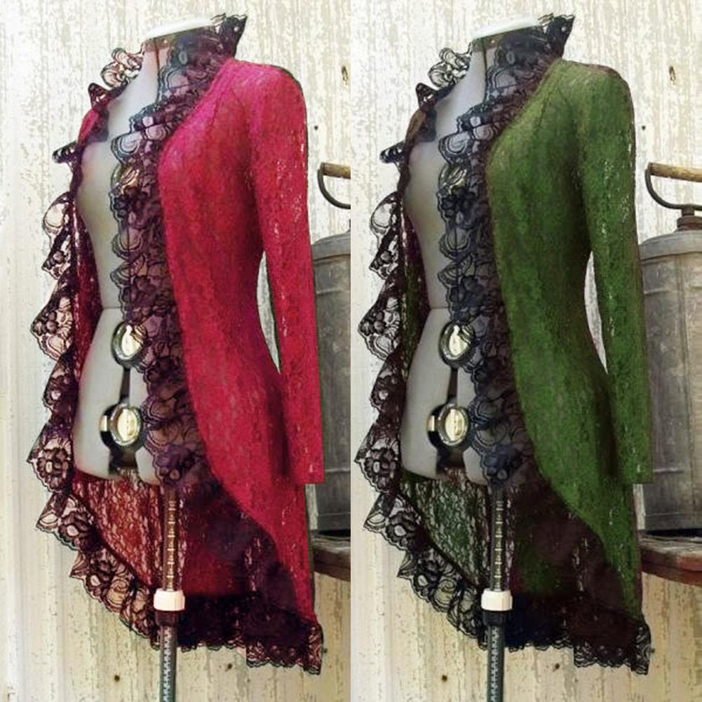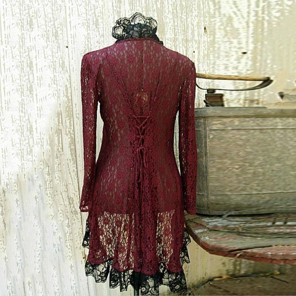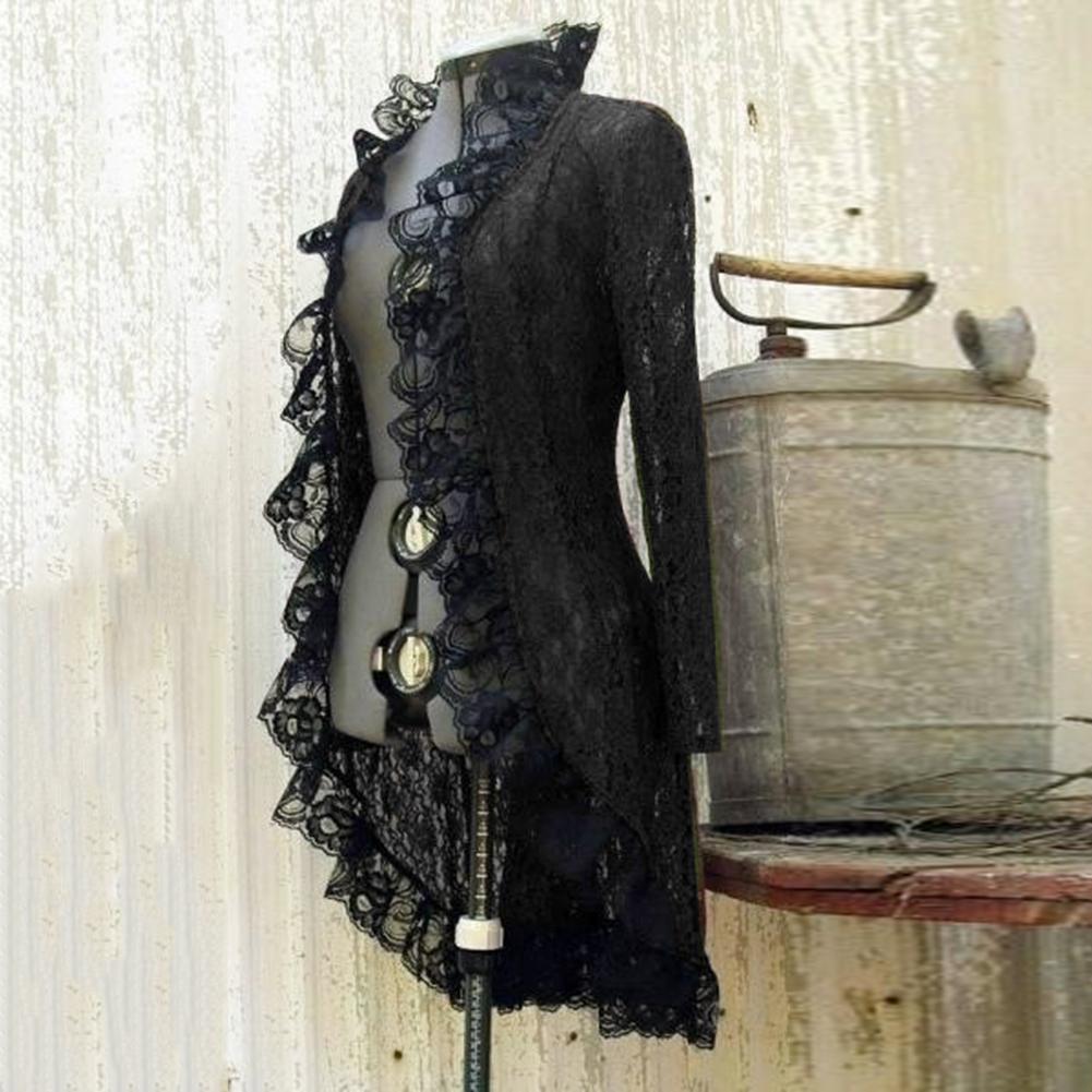 Винтажное женское средневековое пальто-пиджак в стиле стимпанк со стоячим воротником и шнуровкой
