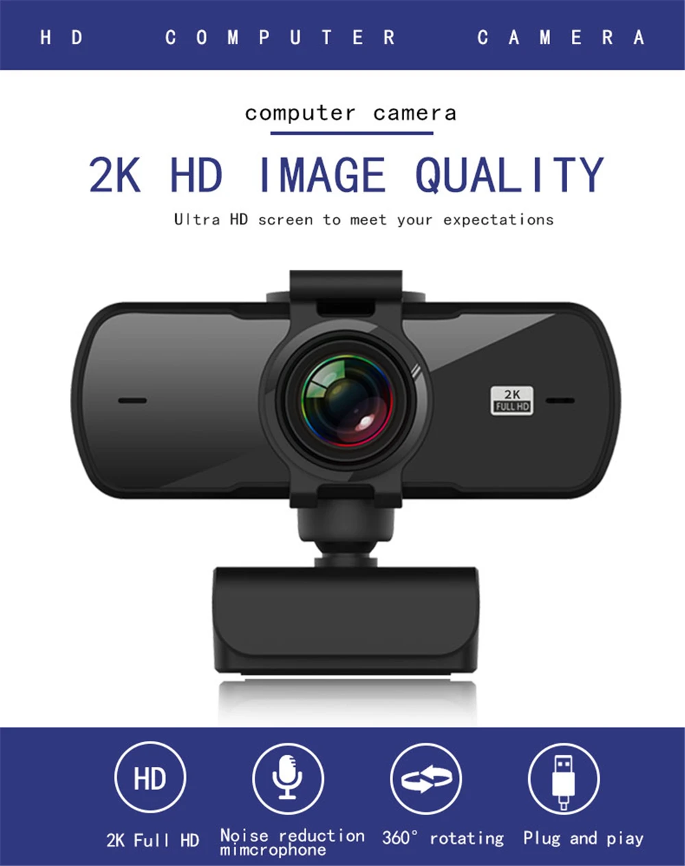2K веб-камера, Бесплатная компьютерная веб-камера для ПК с микрофоном для прямого вещания, видео вызова, конференции, работы, камеры, веб-ПК