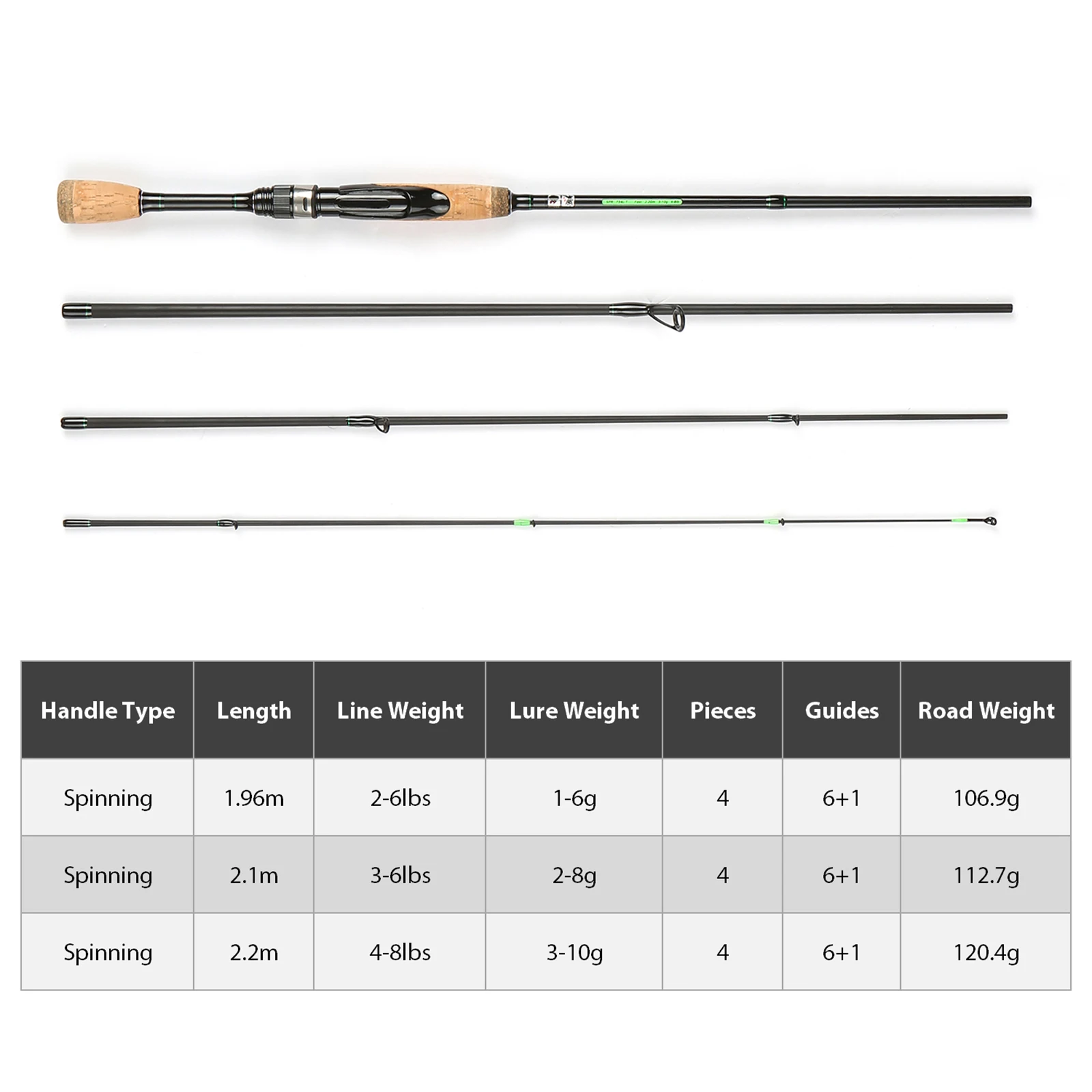 Удочка для путешествий, оснащена портативным 4-х секционным дизайном, гладкими керамическими направляющими кольцами, устойчивым сиденьем катушки и фиксирующей гайкой, обеспечивает вам хорошее удовольствие и удобство для вашей рыбалки!