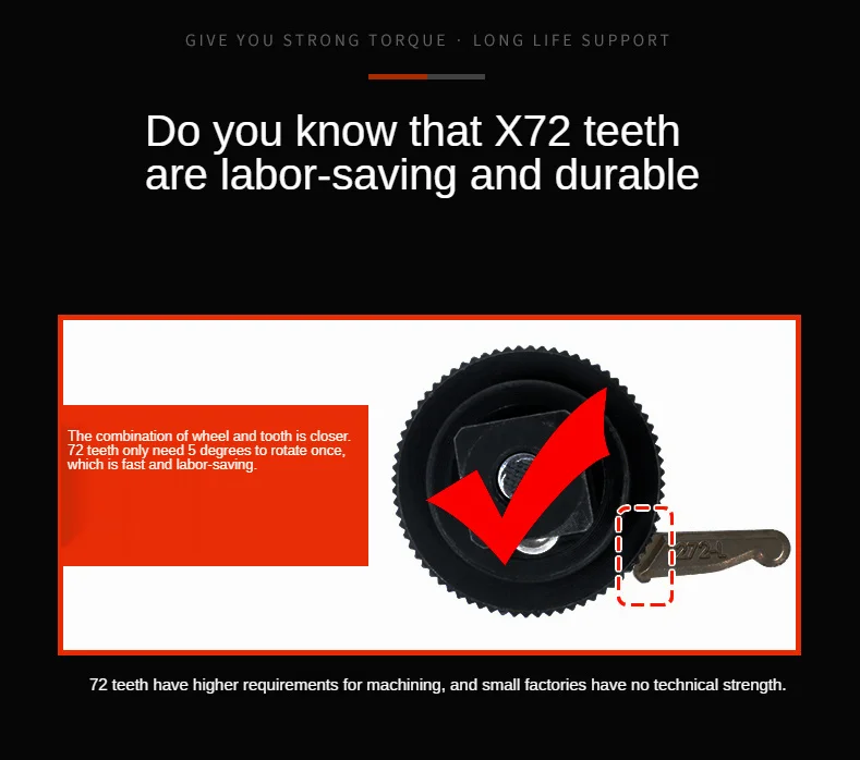 В 72-зубчатой храповой идеально подходит для труднодоступных местах. Легко изменить с помощью щелчка большого пальца.