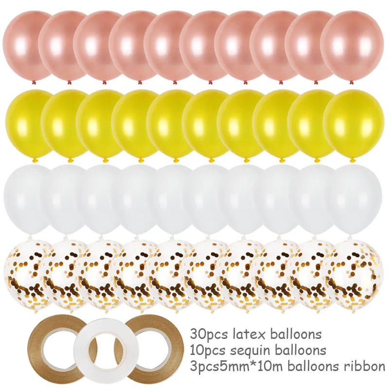 Размер: 12 дюймов Набор содержит: 30 латексных шаров + 10 шаров с блестками + 3 ленты (5 мм * 10 м)