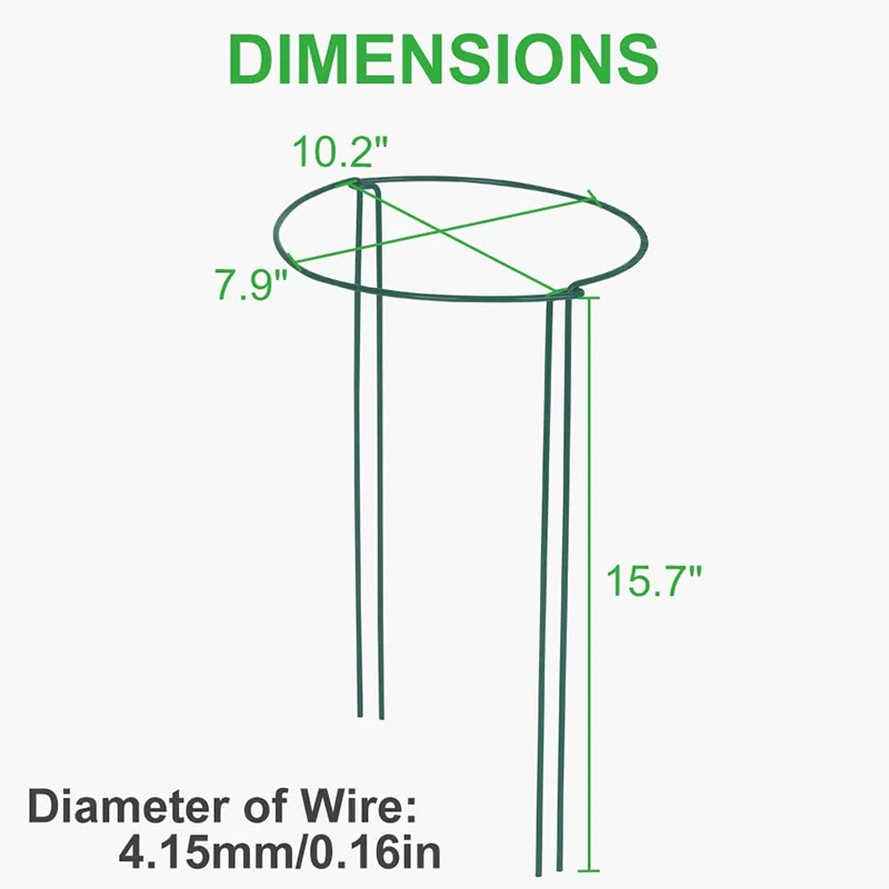 Кольцо для поддержки растений устойчиво к ржавчине, погодным условиям, прочное и прочное, хорошо поддерживает и защищает растения от сильного ветра, сильного дождя и собственного сильного цветения. Зеленый внешний вид помогает смешаться с растениями, кажется невидимым, довольно естественным.