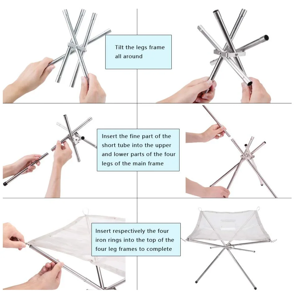 Портативная наружная пожарная яма, рушится стальная сетка, огнеупорная стойка, идеально подходит для кемпинга, двора и сада с сумкой для переноски