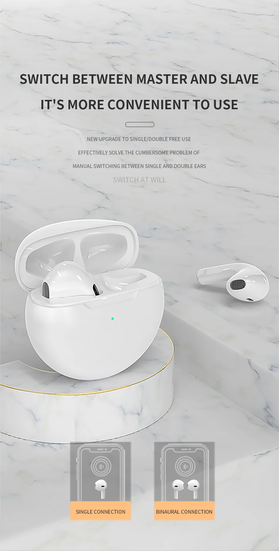 4. Бинауральный вызов, левый и правый наушники можно использовать отдельно.