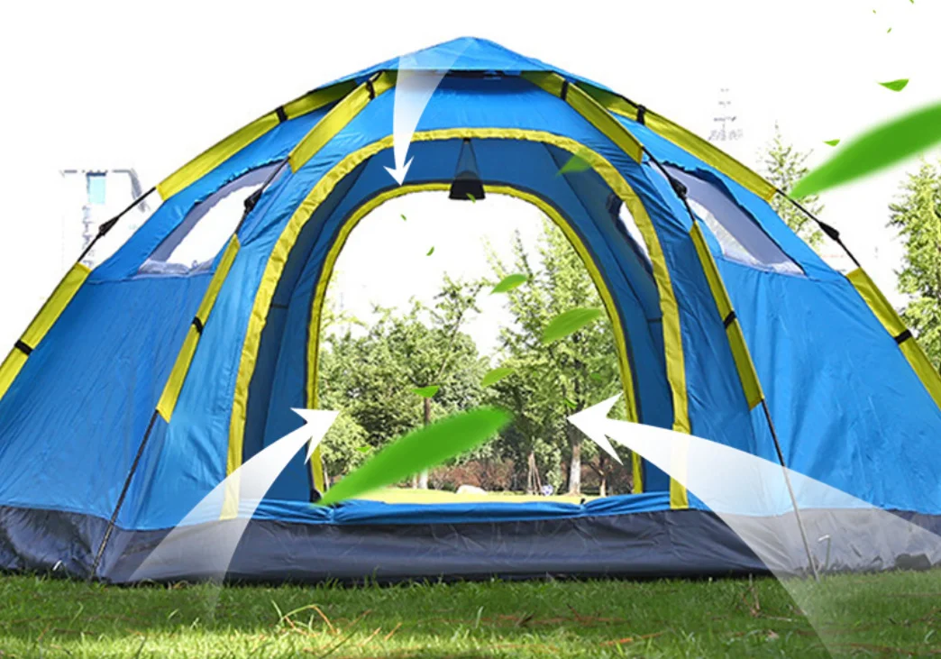 Крючки для лампы в верхней части палатки с 4 двухслойными вентиляционными окнами