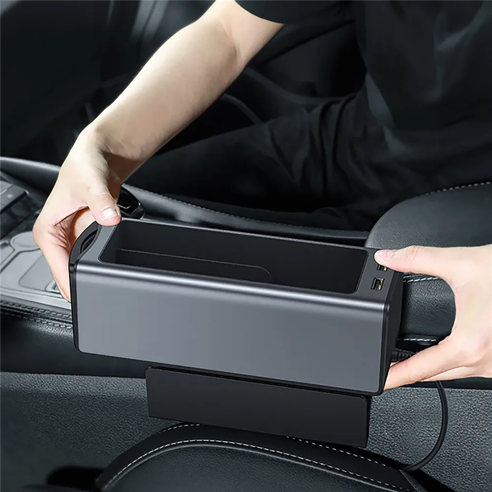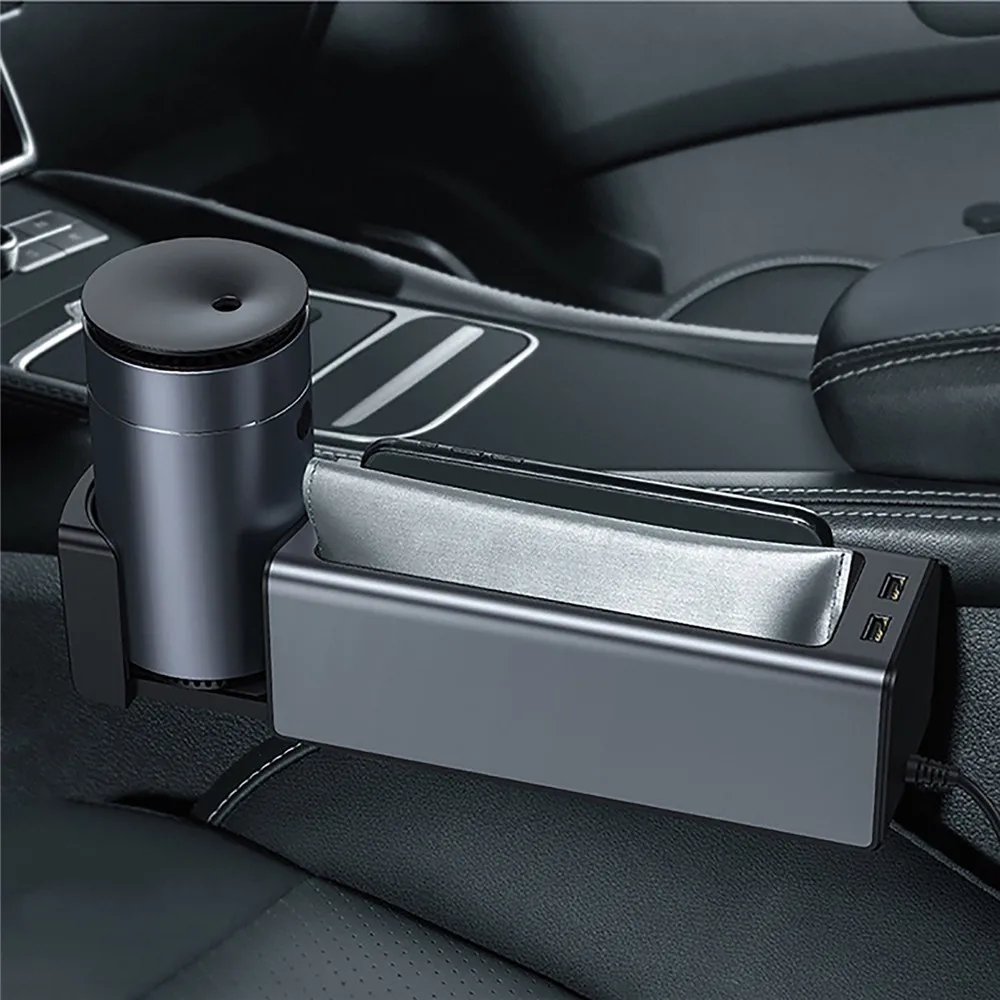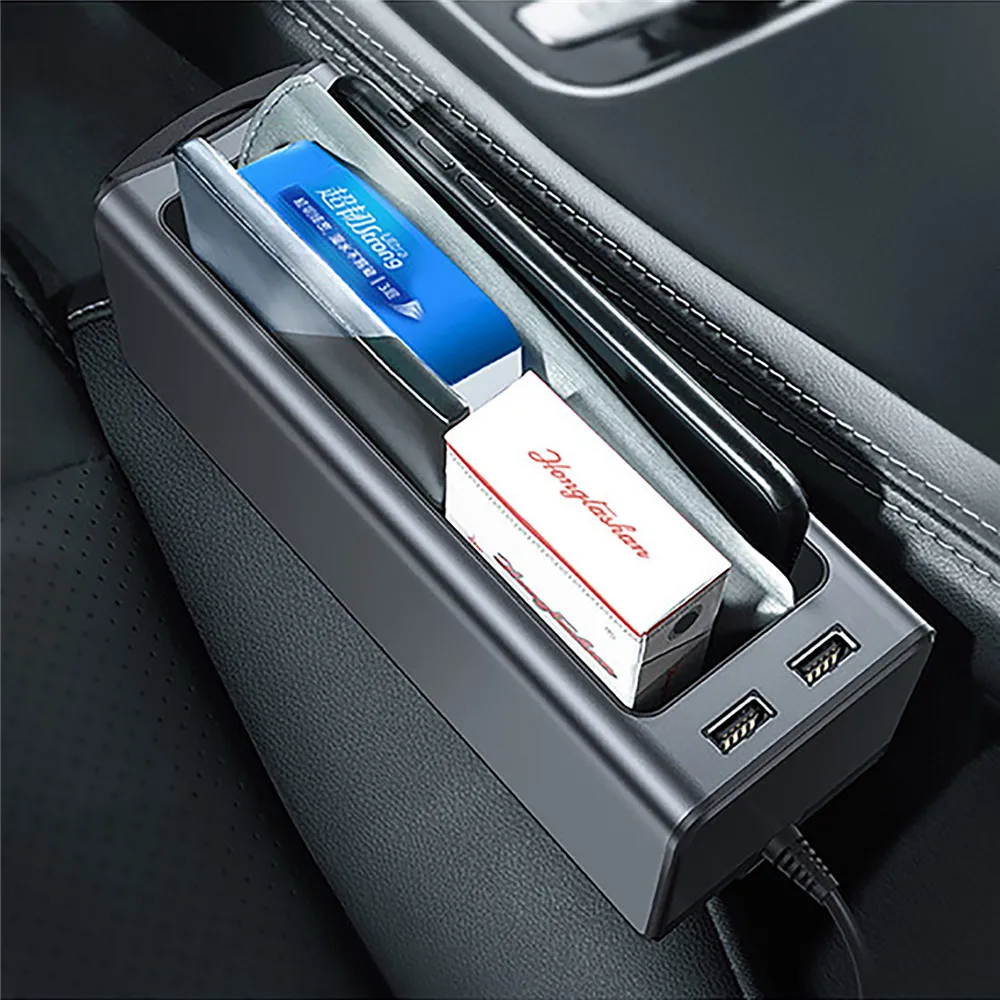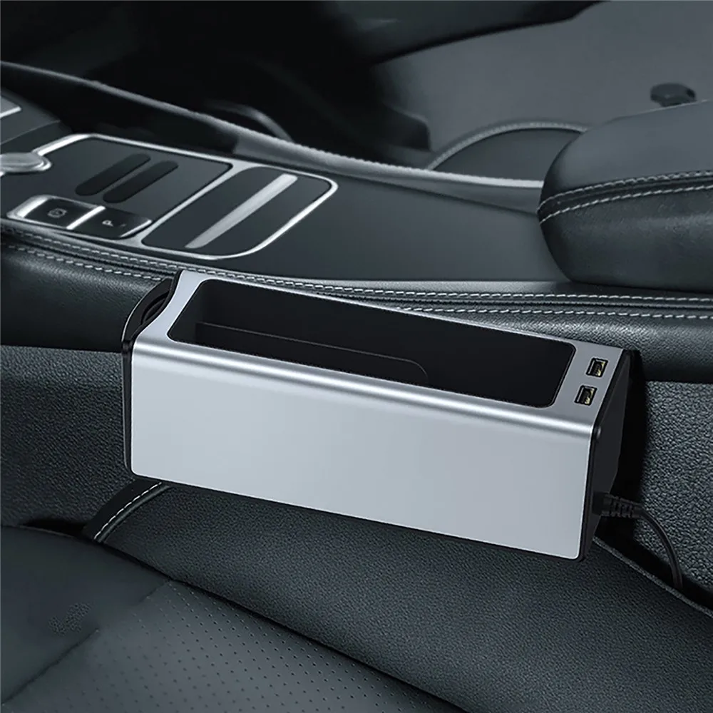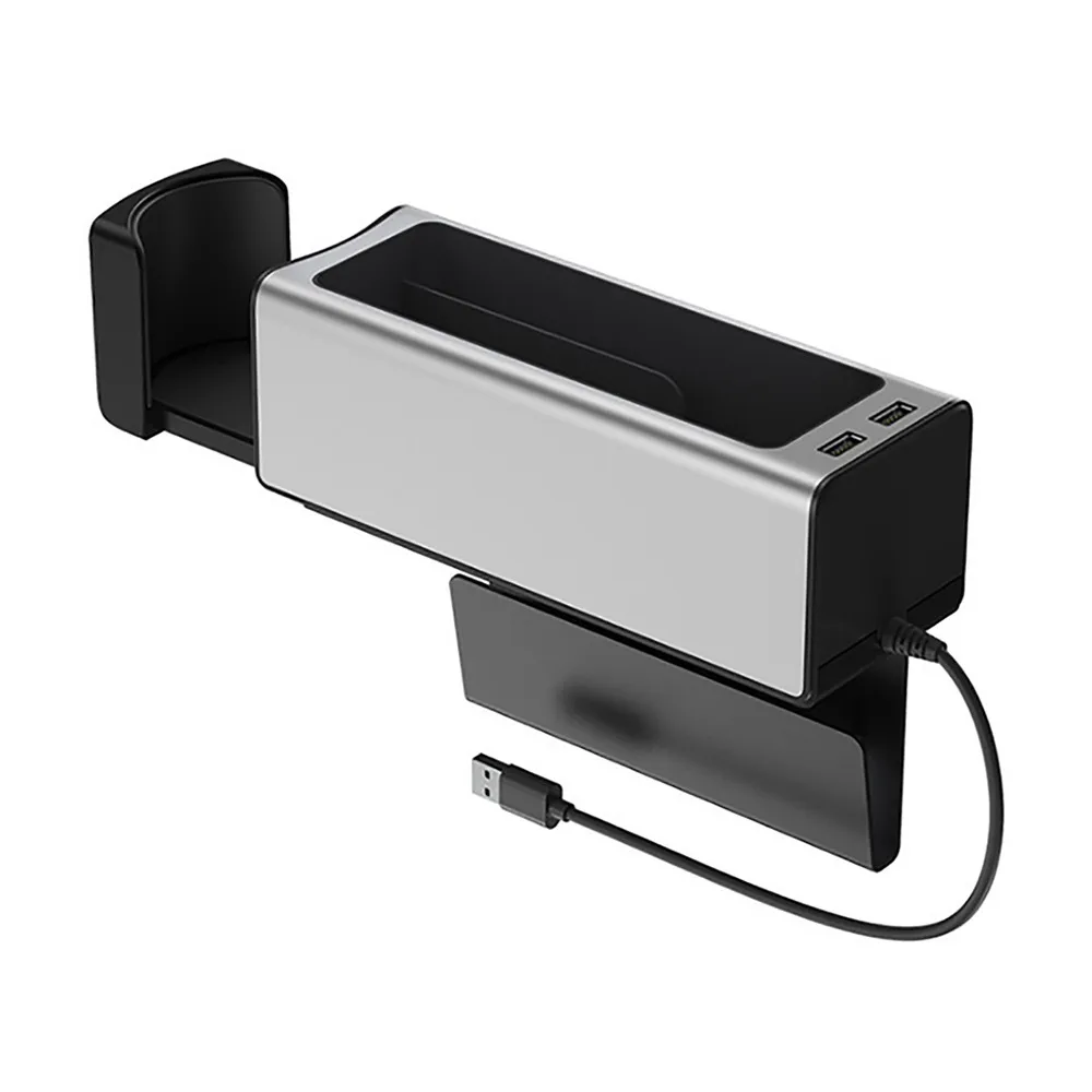 Металлический автомобильный подлокотник, органайзер для консоли, ящик для хранения, органайзер с двумя USB-портами для кошелька, монет, ключей, карт, подстаканника для телефона