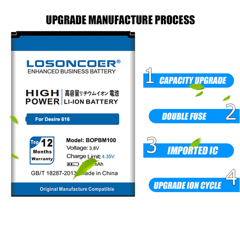 100% оригинал LOSONCOER BOPBM100 3600mAh батарея для HTC Desire 616 D616w V3 D616H D616d