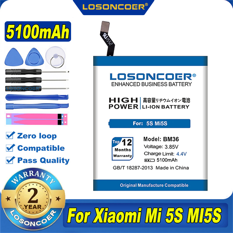 100% Оригинальный LOSONCOER 5100 мАч BM36 для Xiaomi Mi 5S батарея Mi5S мощные батареи