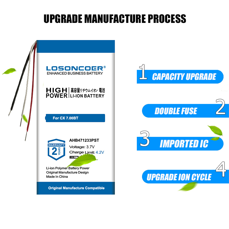 100% Original LOSONCOER AHB471233PST 300mAh Battery For Sennheiser CX 7.00BT , BA 170 AHB471233PST Momentum In-Ear Headset