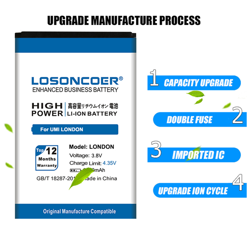 100% Оригинальный аккумулятор LOSONCOER LONDON 3300 мАч для UMI LONDON / Pixus Jet /Bravis A506 /Kiano Elegance 5,1