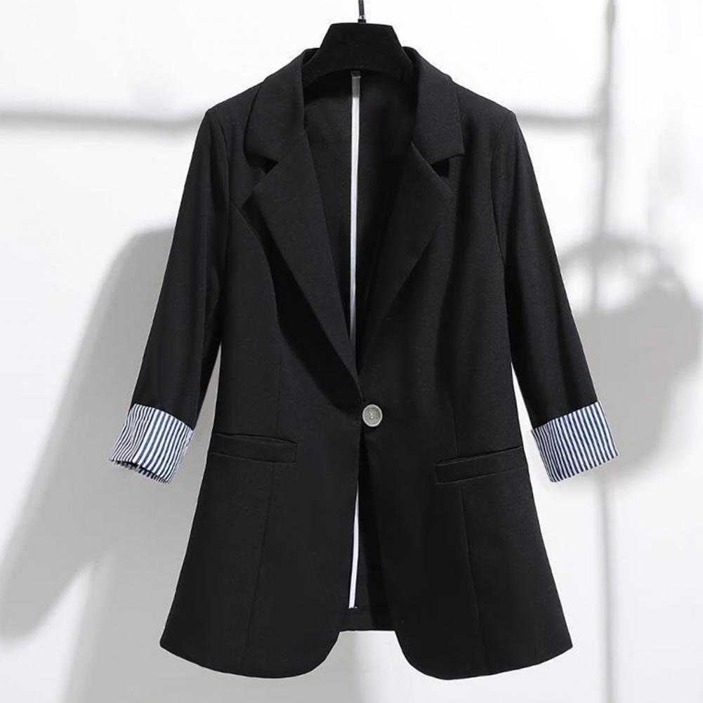 Осень 2020 Новая женская куртка черный Блейзер Куртка 2020 Осень Формальный Блейзер рукав 3/4 отворот Женский блейзер для офиса
