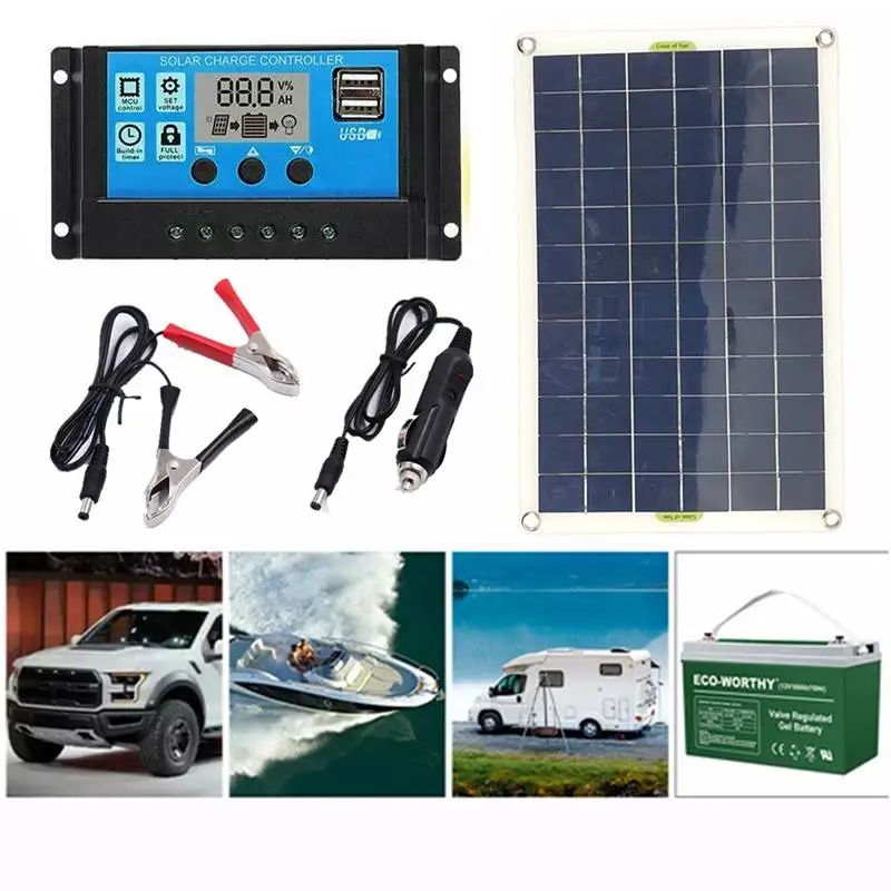 100w Панели солнечные комплект в комплекте 12V usb-камера с флеш-картой памяти 10/30/60/100A Контроллер панели солнечных батарей для автомобиля на колесах Лодка мобильный телефон Батарея Зарядное устройство