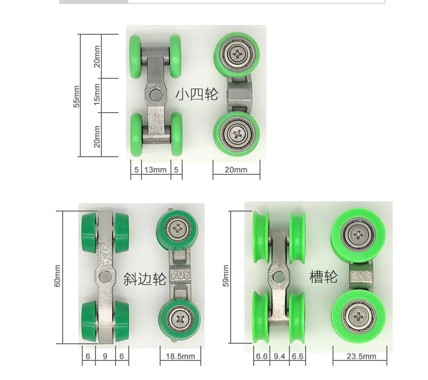 Сейчас зеленый цвет,Раздвижные двери для ванной, тип 304, нержавеющая сталь, бесшумный шкив, душевая комната, 4 нейлоновые колеса, двери, ролик, душевая комната, аксессуары
