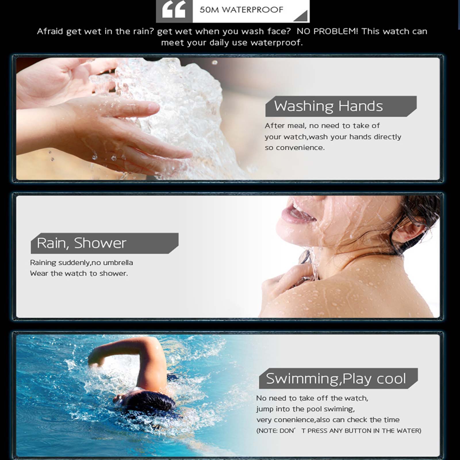 Функции электронных часов: секундомер, будильник, ежечасное напоминание, световой индикатор, отображение даты, отображение времени, отображение недели, преобразование 12/24 часов, водонепроницаемость