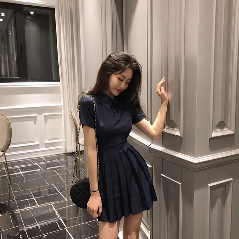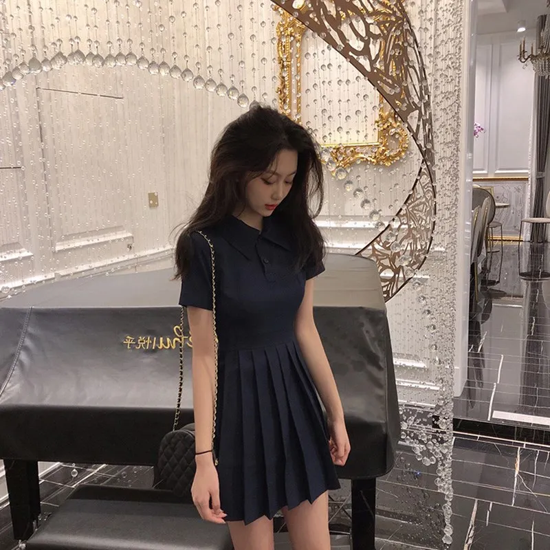 Женское Плиссированное мини-платье, летнее офисное платье с коротким рукавом и высокой талией, милое вечернее платье во французском стиле для студентов, Z224