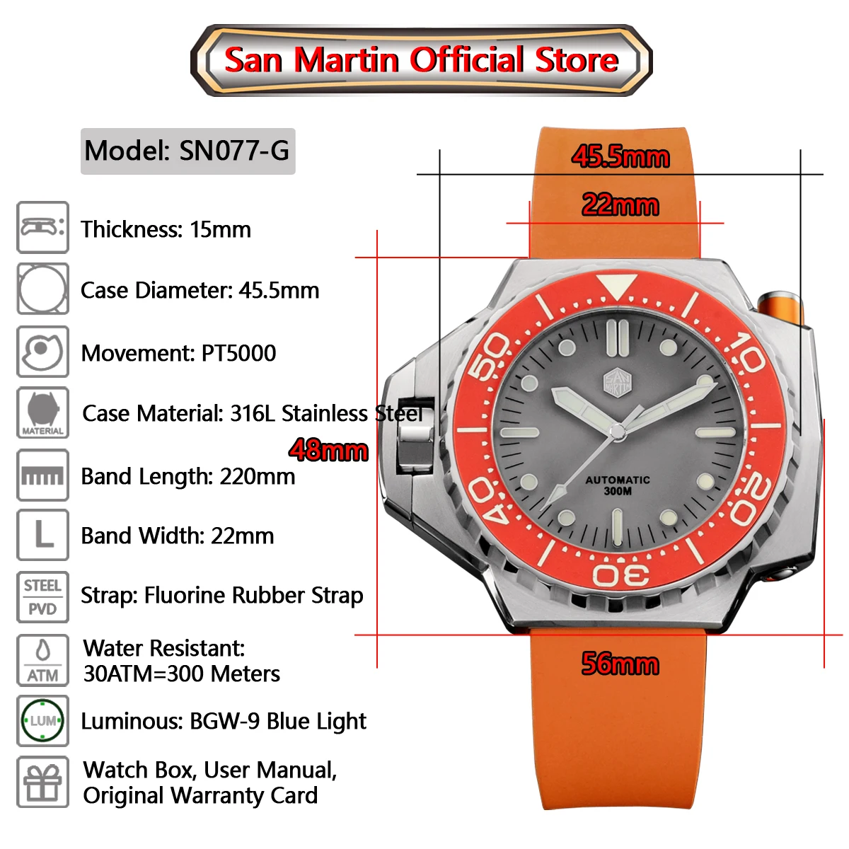 Чехол: материал-нержавеющая сталь 316L