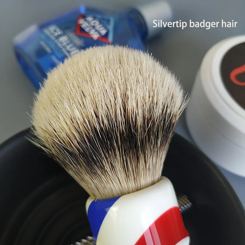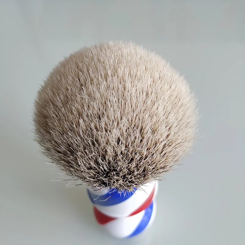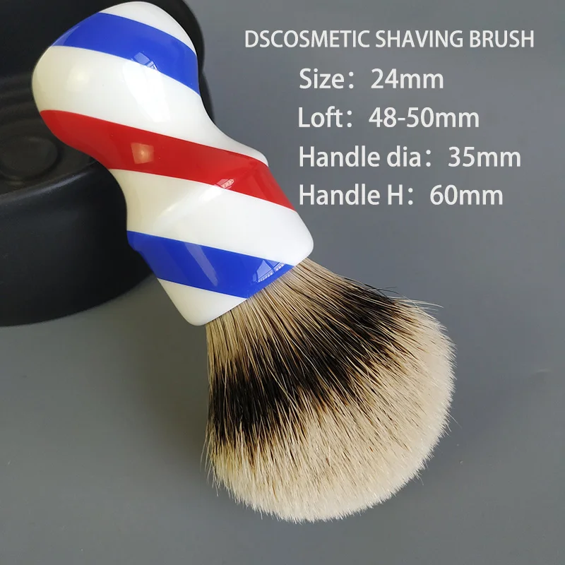 Мягкая и плотная помазок для бритья из барсучьего волоса. Волосы: Барсучий волос silvertip Размер узла; 24 мм Лофт для волос: 48-50 мм Ручка: полимерная ручка парикмахерского цвета Размер ручки: H:60 мм D:35 мм