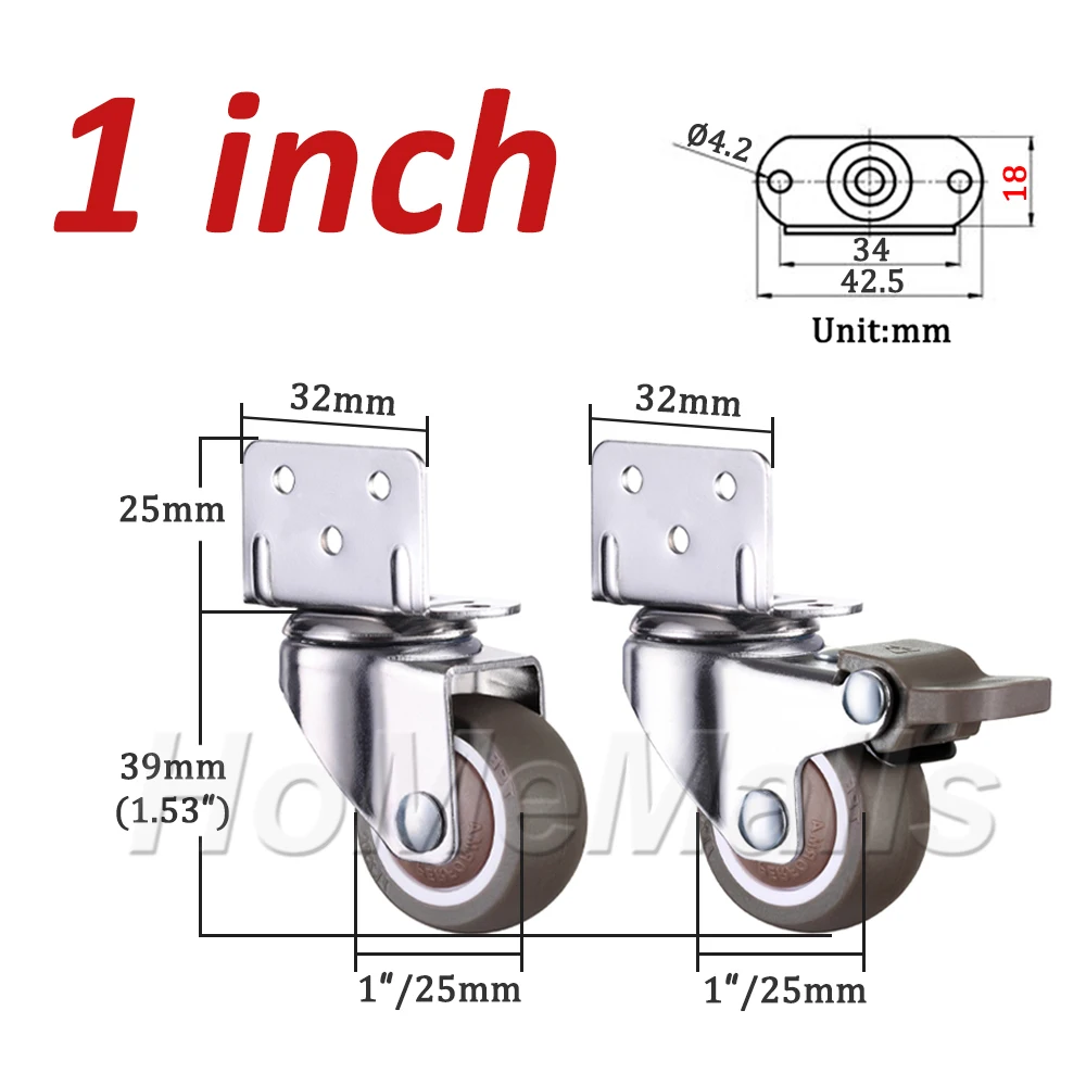 2/4 шт. 1/1.25/1.5/2 дюймов поворотный Мебельные ролики колесики l-типа резиновые Кастер с замками роликовые колесики для мебели для хранения тележки верстак