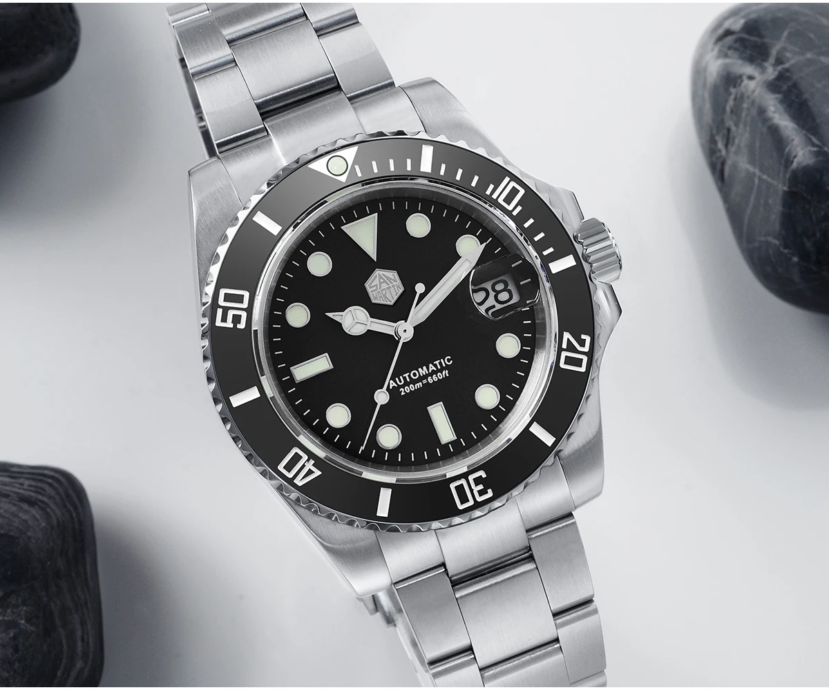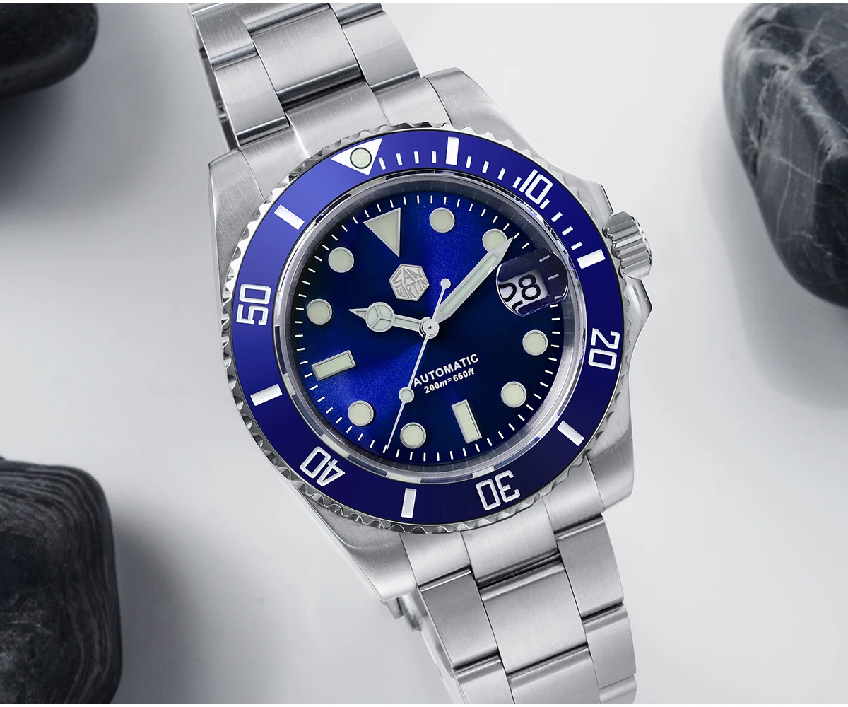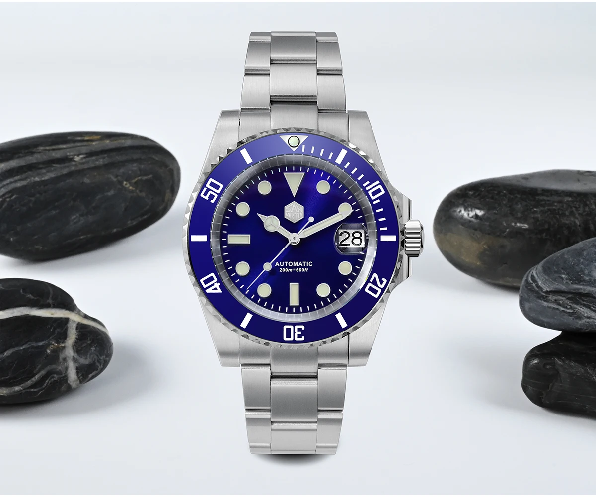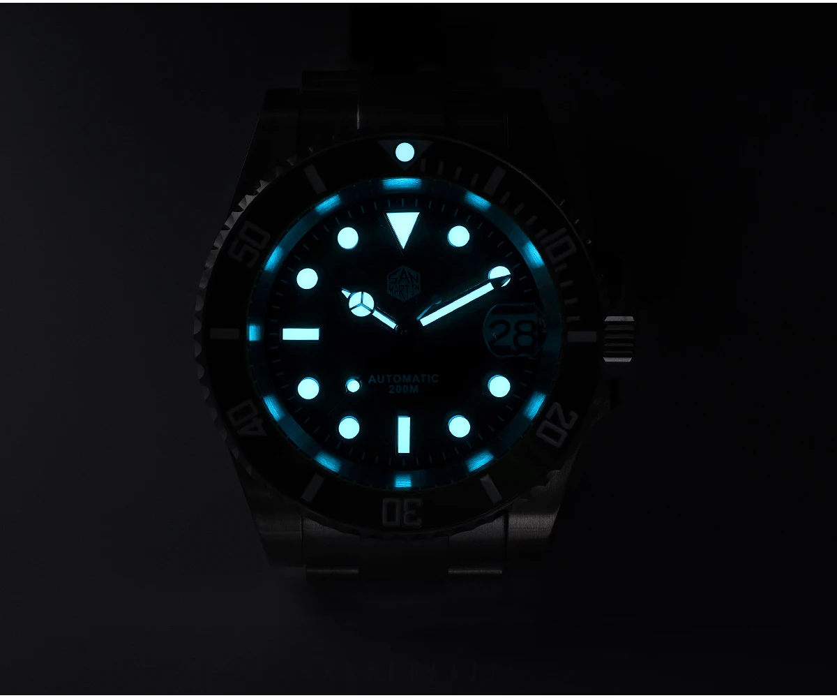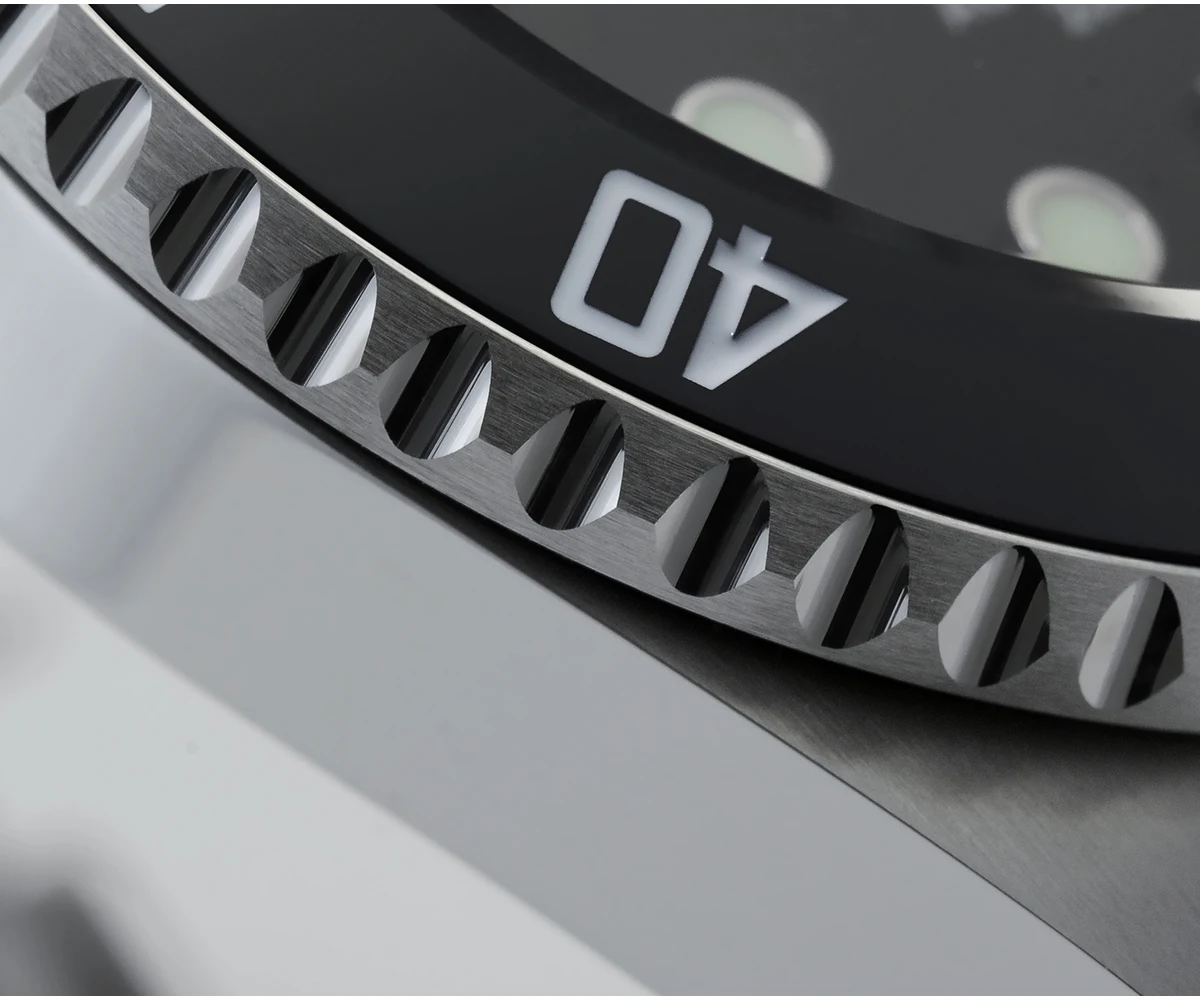 Безель: 120 кликов однонаправленный Безель хронографа, керамическое верхнее кольцо, светящиеся маркеры 12 часов