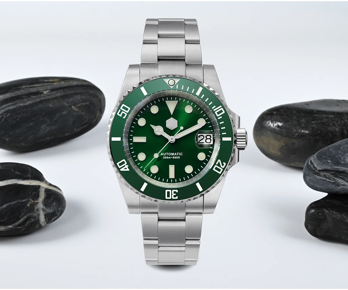 Цвет циферблата: 3D шестигранный нанесенный логотип, синий солнечный луч, Зеленый Солнечный луч, черная эмаль
