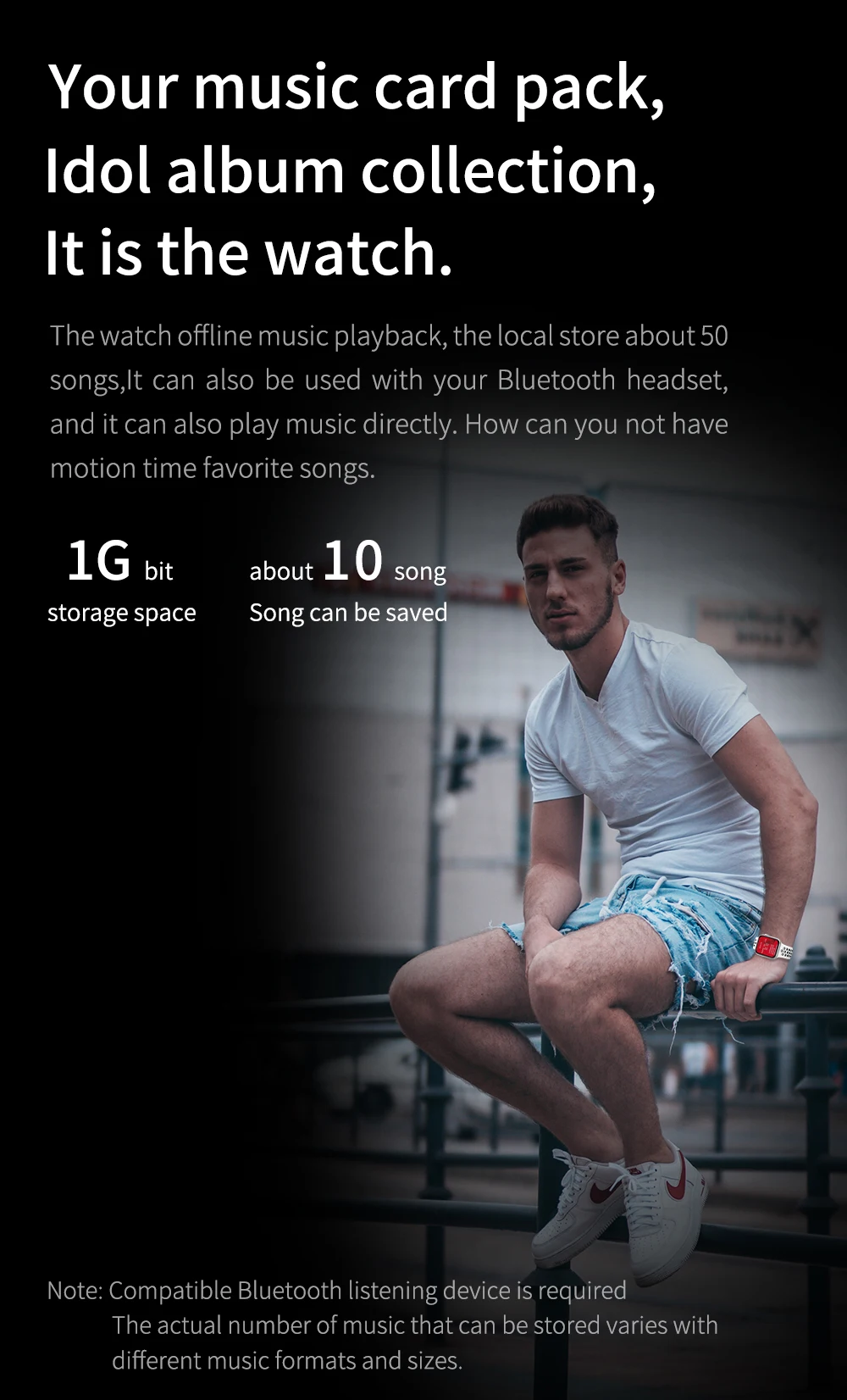 1G бит speicher zugeordnet vor allem für musik; spielen lokalen musik direkt oder mit bluetooth kopfhører. Bluetooth anrufe, kontakte, eingehende anrufe erinnerung, alarm, heben handgelenk wake uhr, kamera remote, mehrere uhr gesichter, anpassen uhr gesichter, низкомощный modus и т. д.