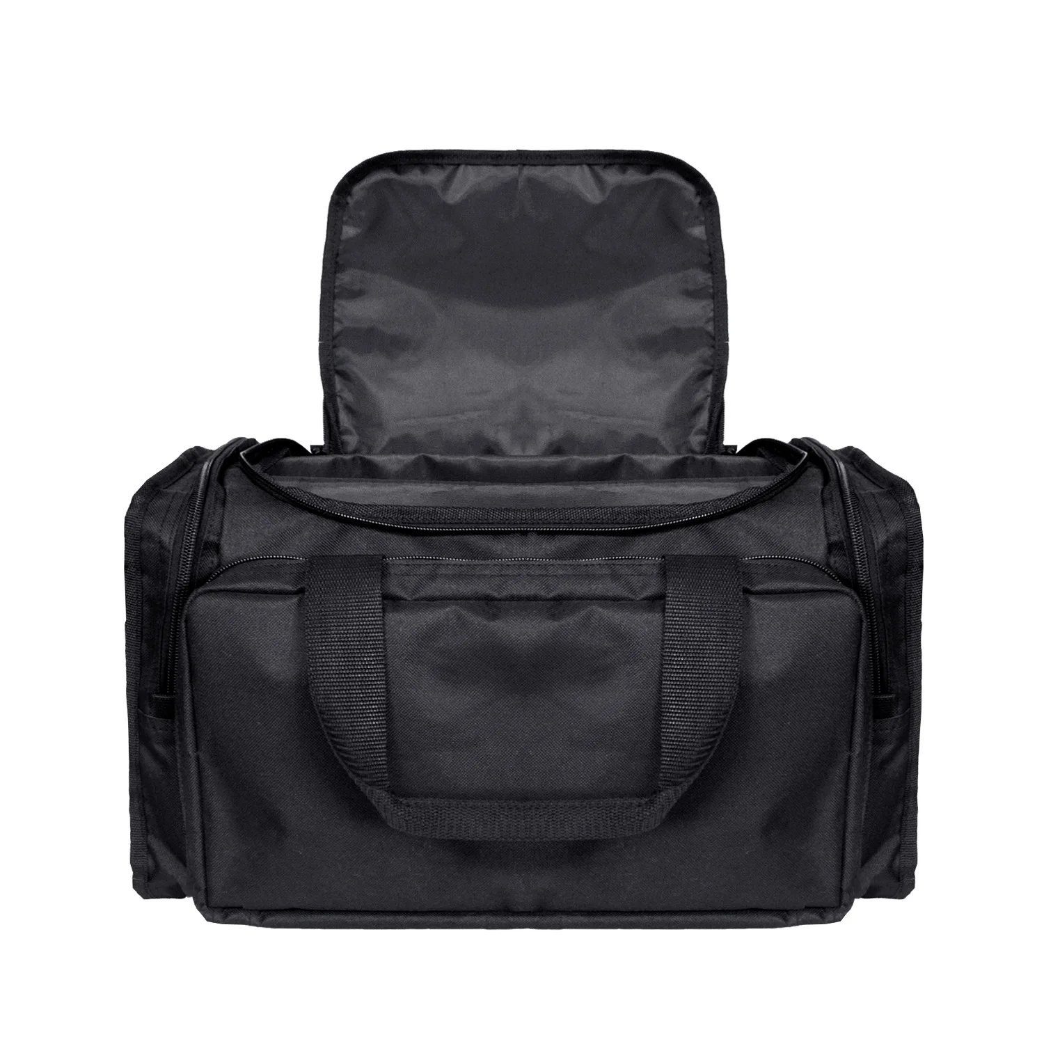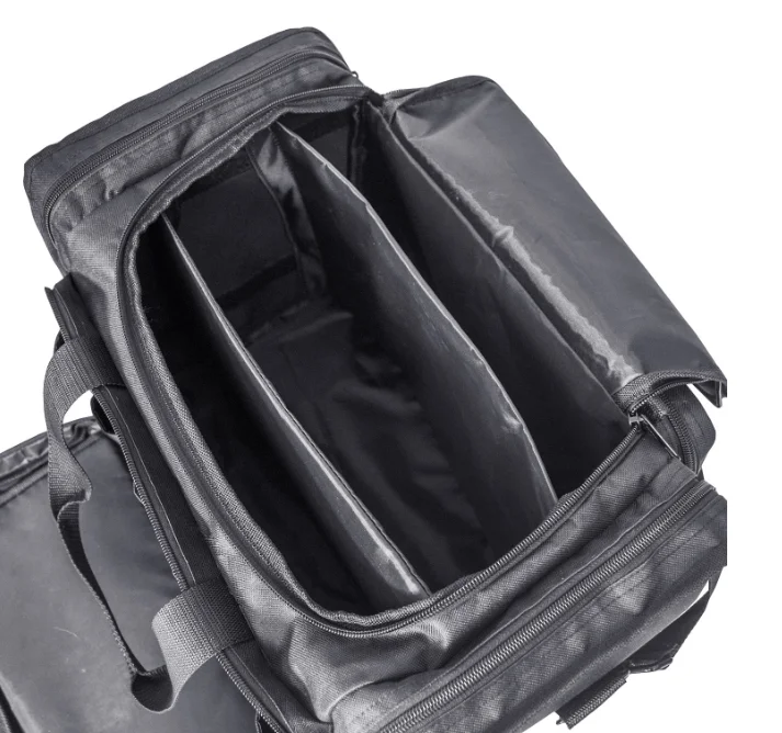 600D ткань Оксфорд высокой плотности для водонепроницаемости и долговечности. Основной отсек с 2 съемными внутренними разделителями для создания настраиваемых отсеков для хранения. Передний карман на молнии и боковые карманы сохраняют ваши шестерни удобными и безопасными, такими как журнал, патроны и другие аксессуары. Съемный регулируемый плечевой ремень с накладкой. Двойные ручки с ремешком для лучшей фиксации. Широко используется: военные, Тактические Штурмовые снаряжение, Пешие прогулки, охота, кемпинг, спорт. Характеристики: Материал: 600D ткань Оксфорд Цвет: черный/хаки (на выбор) Размер: 45*25*33 см/17,7*9,8*13,0 дюймов Вес: 1,7 кг/3.1lb Посылка: 1 * сумка для улицы