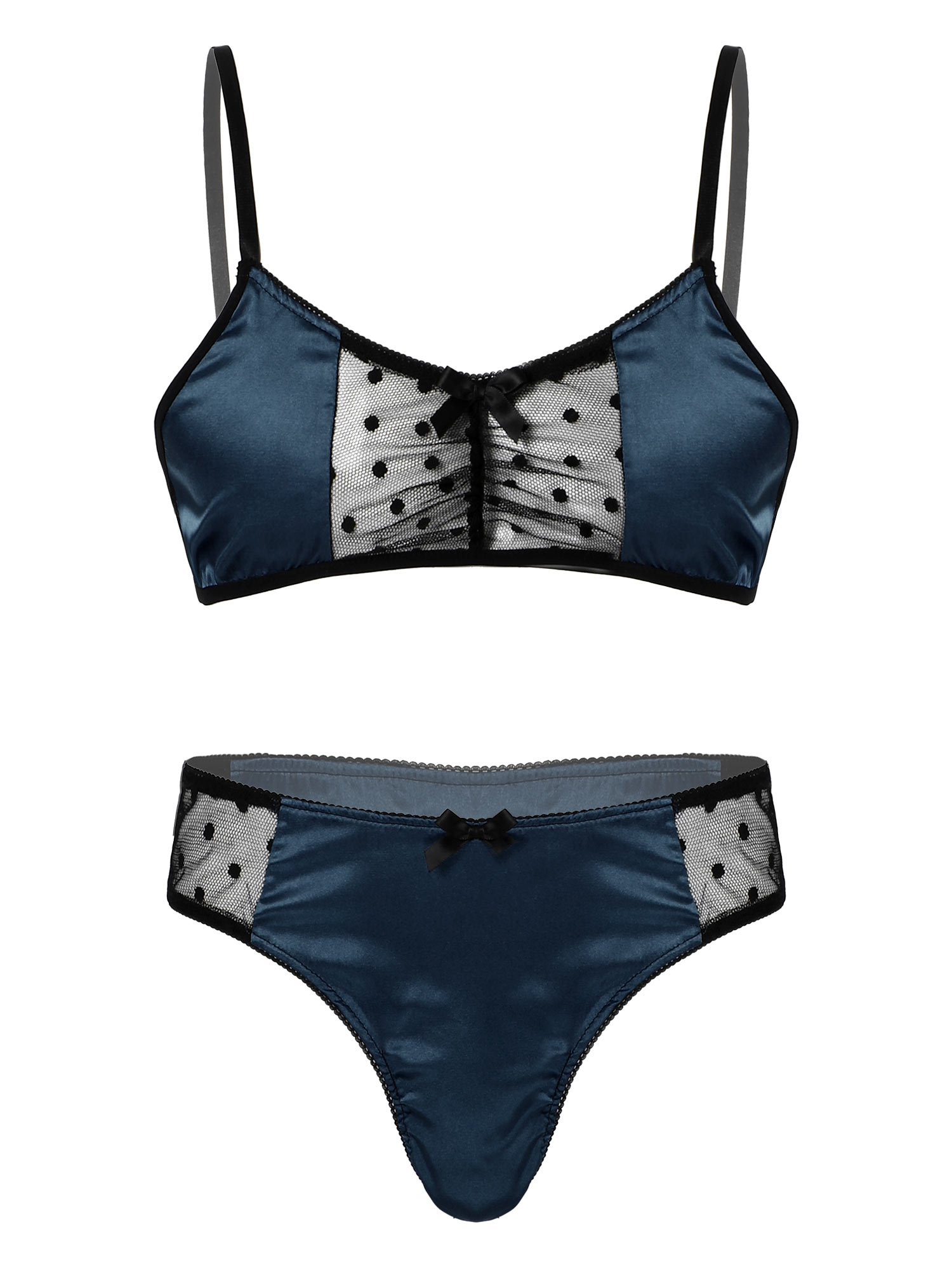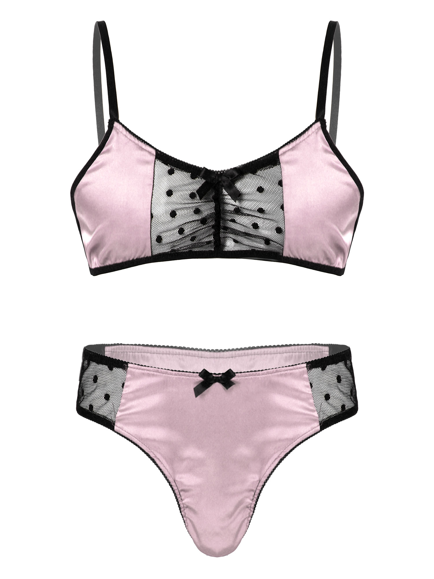 Мужское атласное нижнее белье, костюм, одежда для сна, прозрачная сетка, пэчворк, регулируемый бюстгальтер на тонких бретелях, топы с трусиками-стрингами.