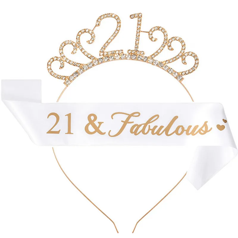 Счастливый 18 21 30 40 50-й День рождения баннер + атласная лента + блестящая Хрустальная корона тиара день рождения юбилейные праздничные украшения