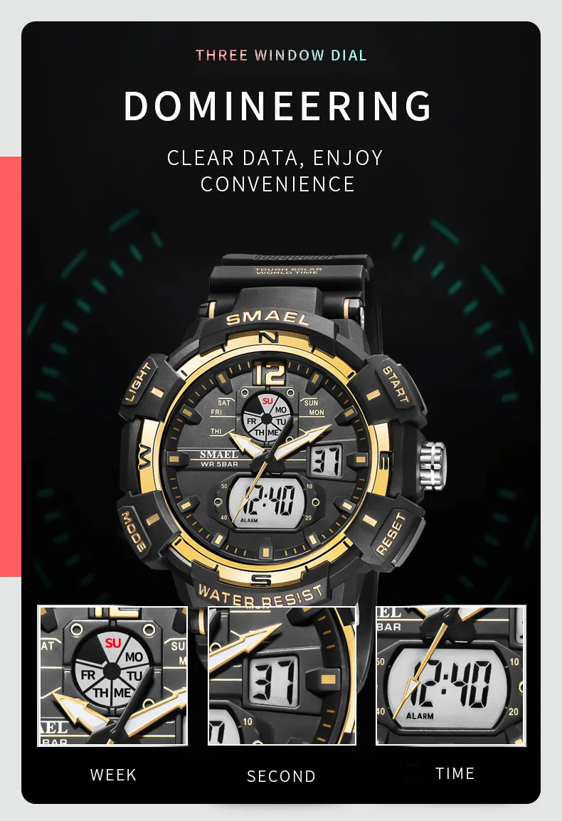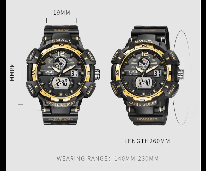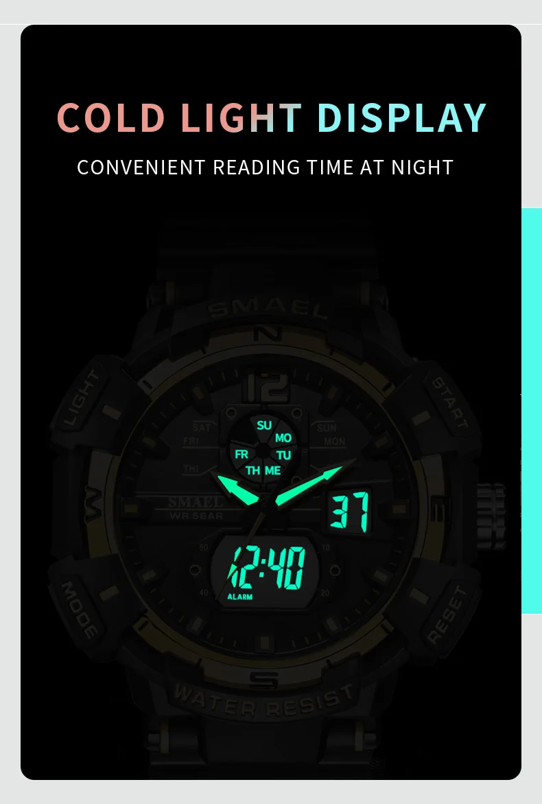 Мужские спортивные часы SMAEL 8045 с двойным дисплеем-удобные и стильные часы, идеальная идея для повседневной носки или фитнеса. Водонепроницаемость до 50 метров, не волнуйтесь, тренируясь в бассейне. Есть светящийся свет для просмотра времени в темноте.