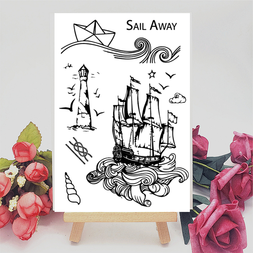11x16CM Pirate ship Transparent Seal Clear Stamps Silicone Seal Roller Stamps DIY Scrapbook Album / Card Production Easter
