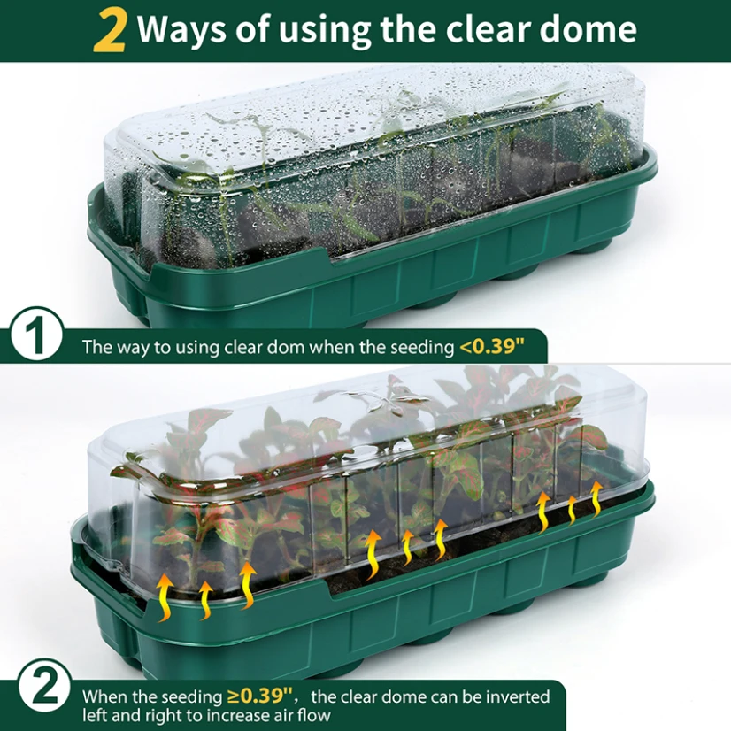 Вентиляционные отверстия этого подноса семян позволяют регулировать температуру и влажность среды рассады, так что вы можете полностью контролировать процесс роста