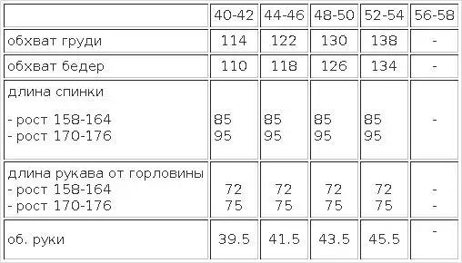Указаны замеры готового изделия. Размеры всех изделий соответствуют российским (ГОСТ), с учетом запаса на свободу облегания: 30см по груди, 20см по бедрам.