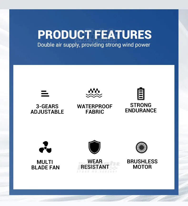 Куртка вентилятора охлаждения имеет два вентилятора на талии одежды. Подключите внешний аккумулятор к USB, и одежда начнет работать. (Внешний аккумулятор не входит в комплект) он имеет три режима воздушного потока, поэтому вы можете регулировать поток воздуха в соответствии с условиями работы и уменьшать температуру более чем на 8 °C.