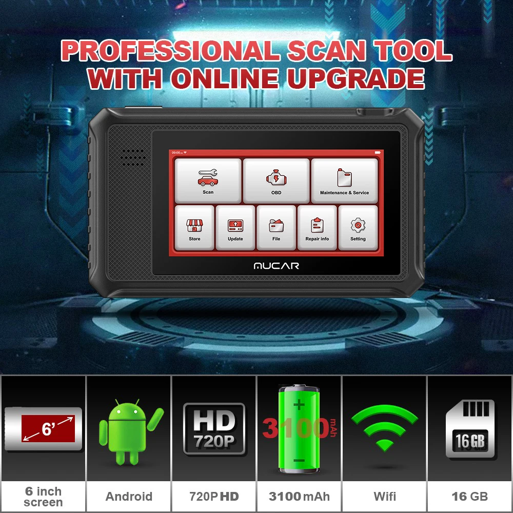 MUCAR VO6 как диагностическое устройство OBD II наивысшего уровня 2021 для пользователей, поддерживаемых DIY, включает считывание кода/очистку потока данных, испытание на приведение в действие, специальные функции и т. д.